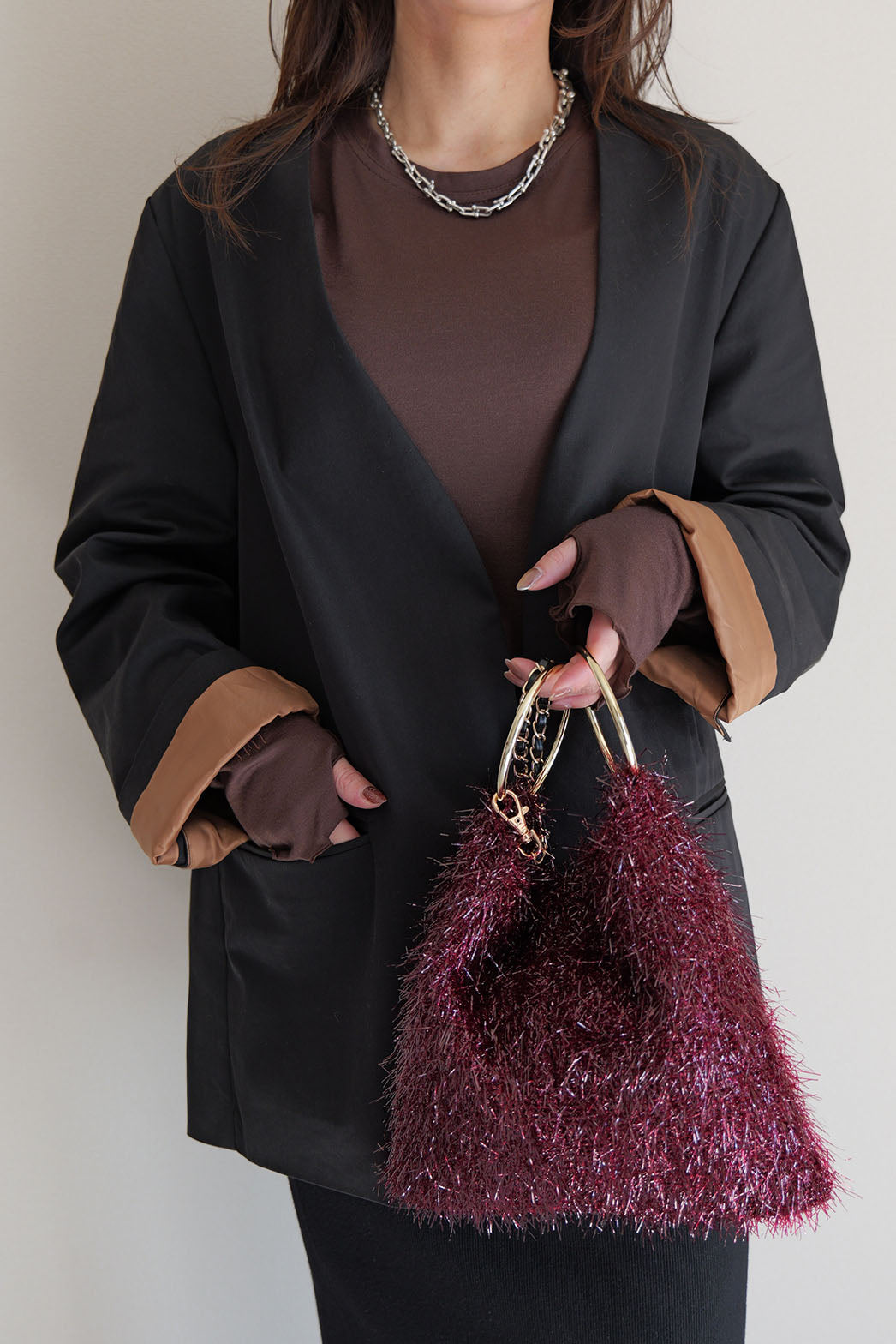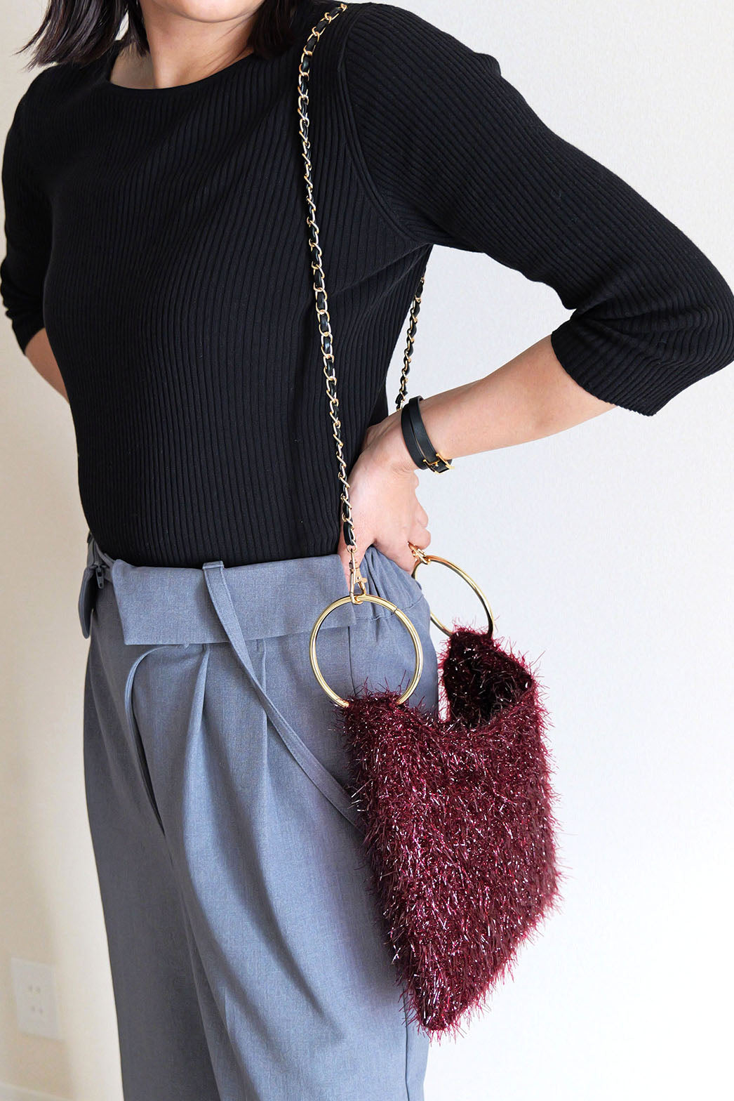 合皮テープを通した上品なチェーンは
