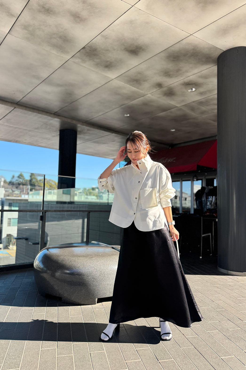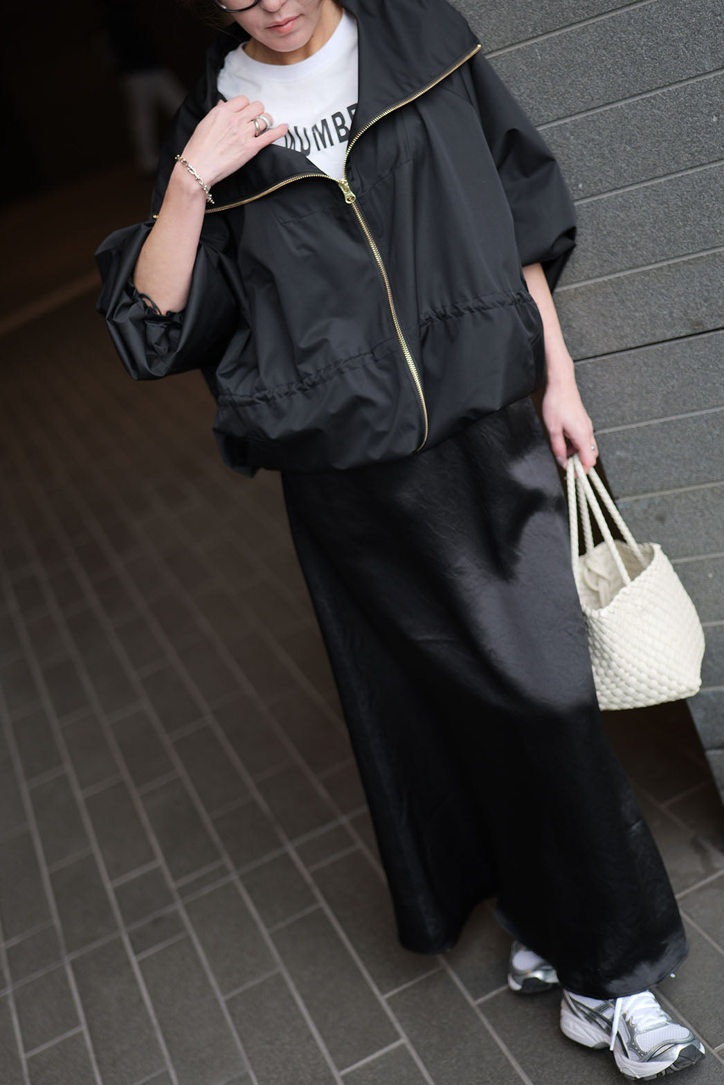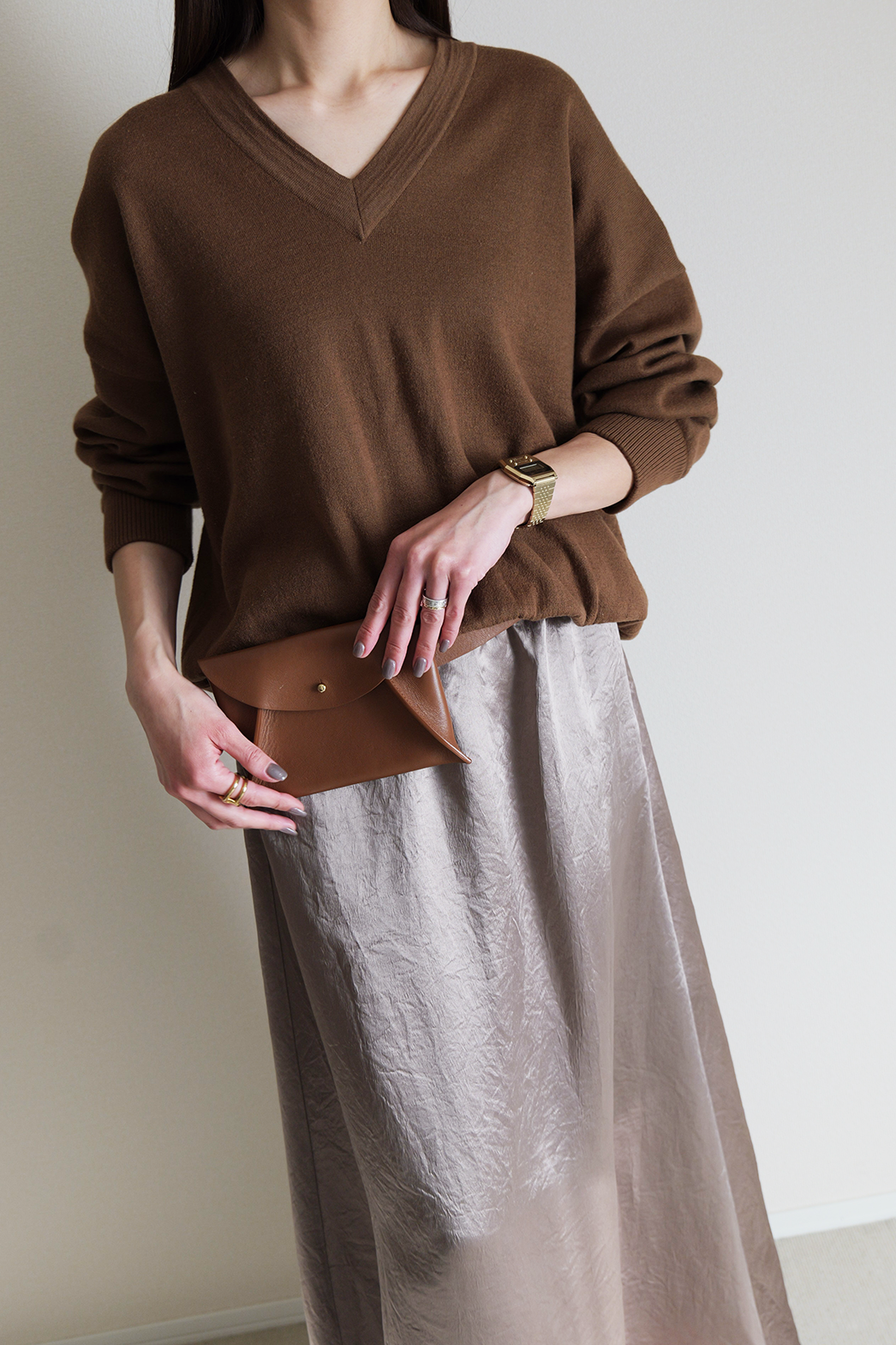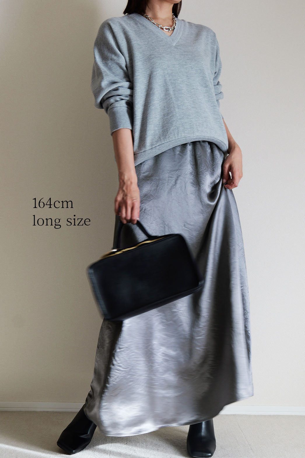 動くたびに陰影の表情が変わり、素材そのものの魅力が際立つ一着です