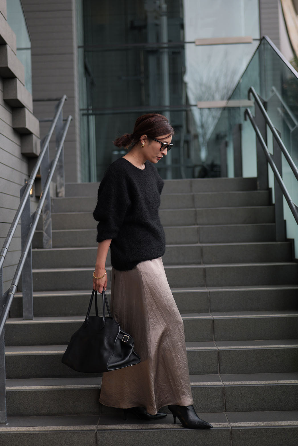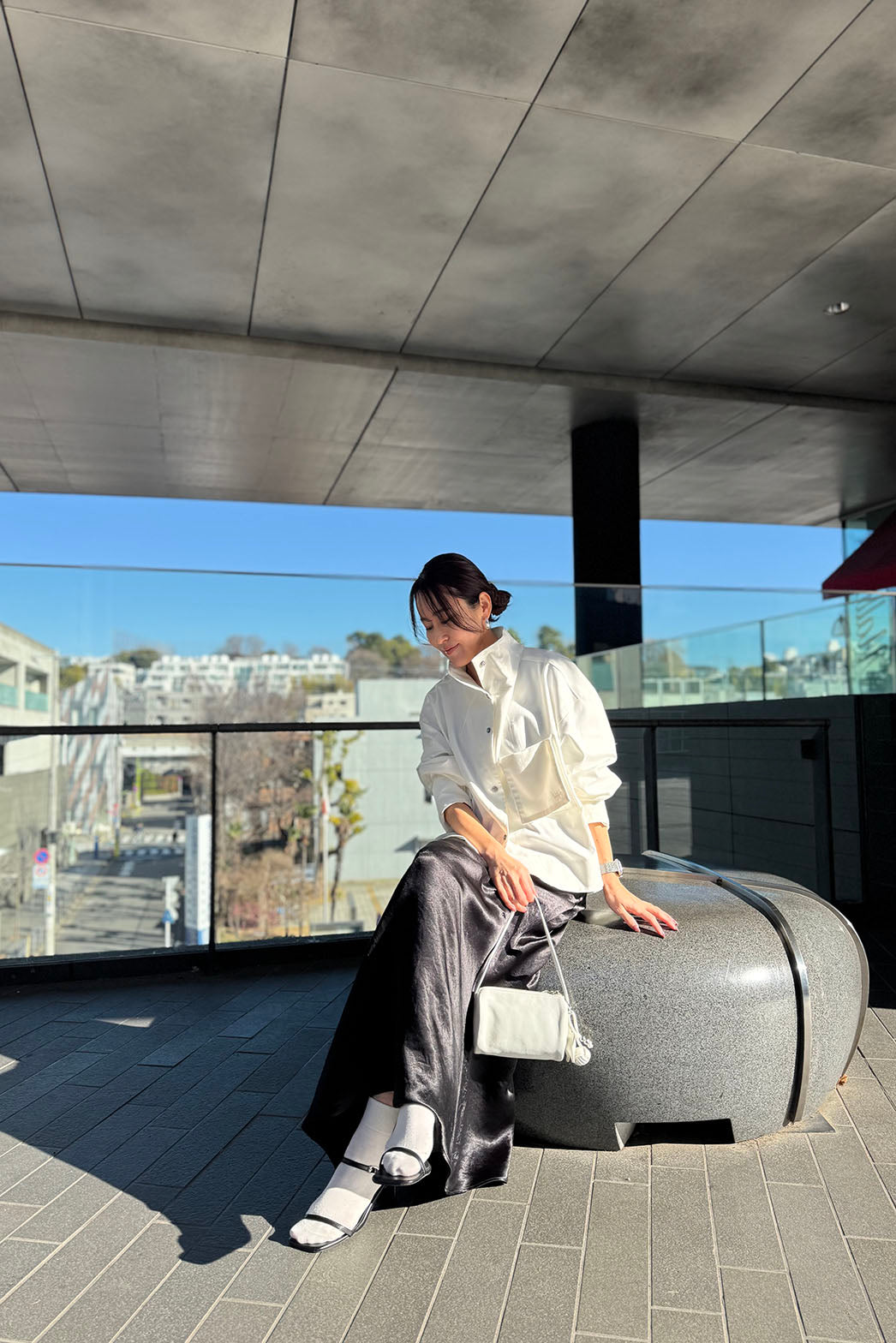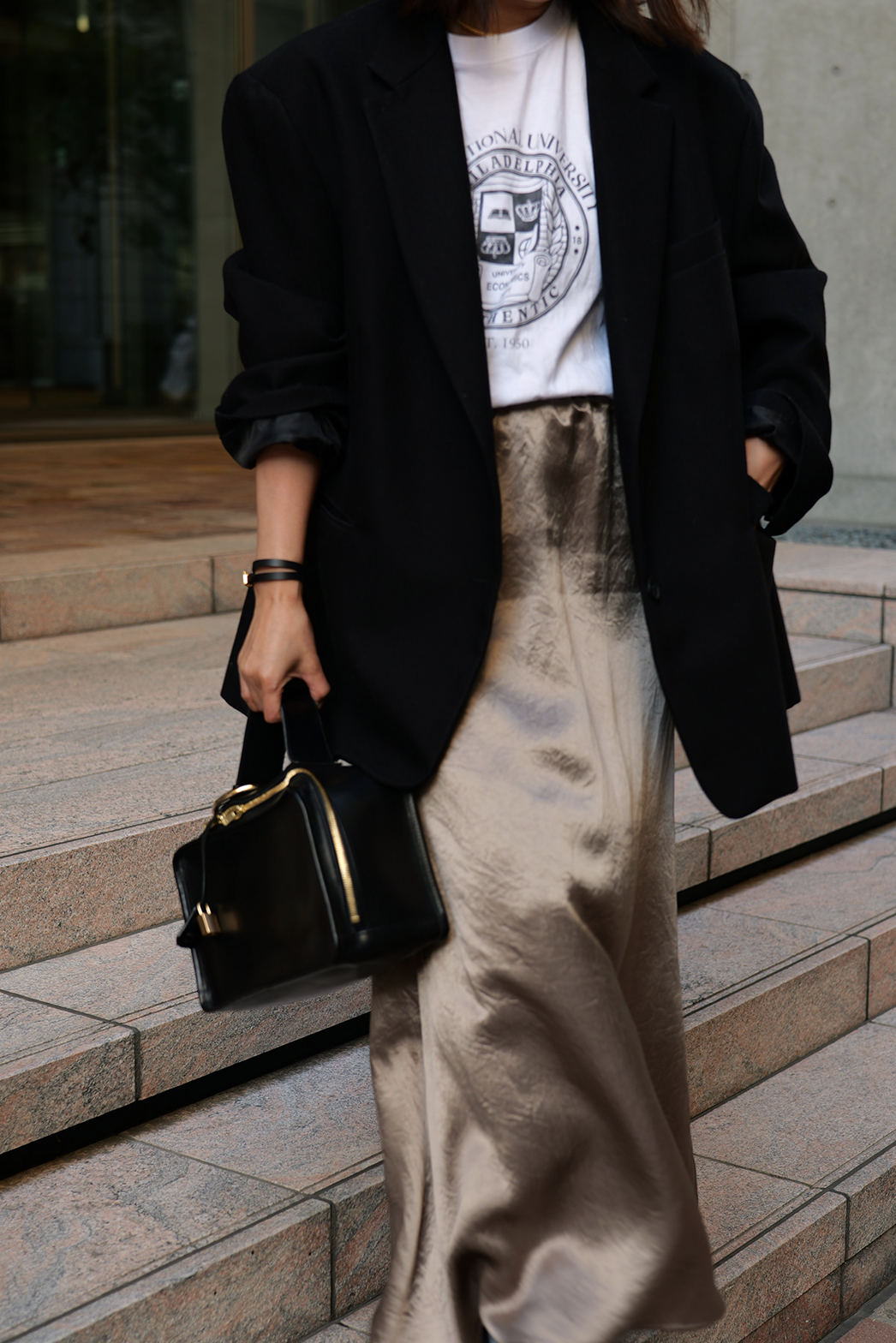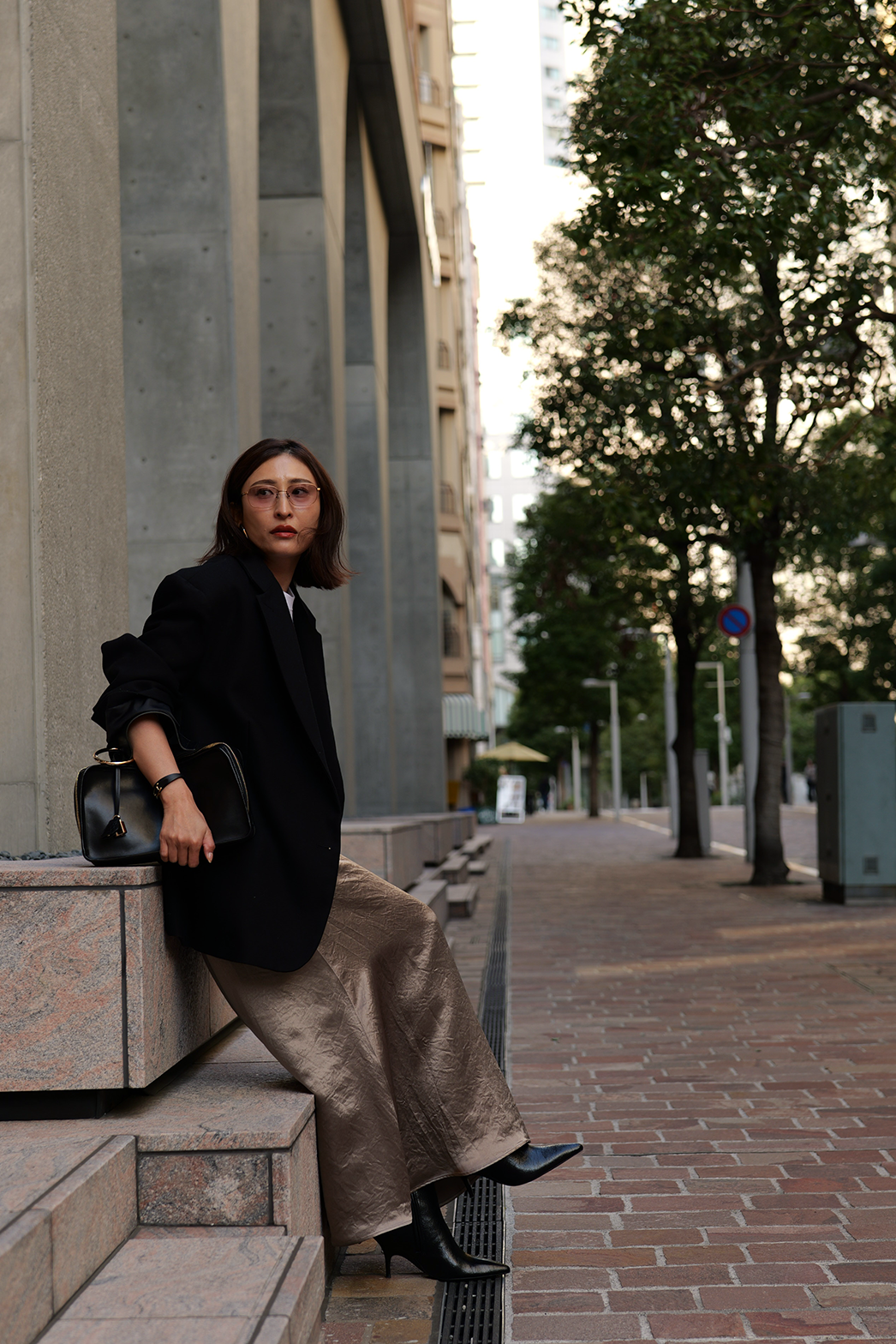動くたびに陰影の表情が変わり、素材そのものの魅力が際立つ一着です