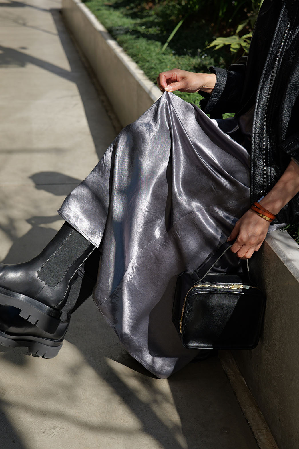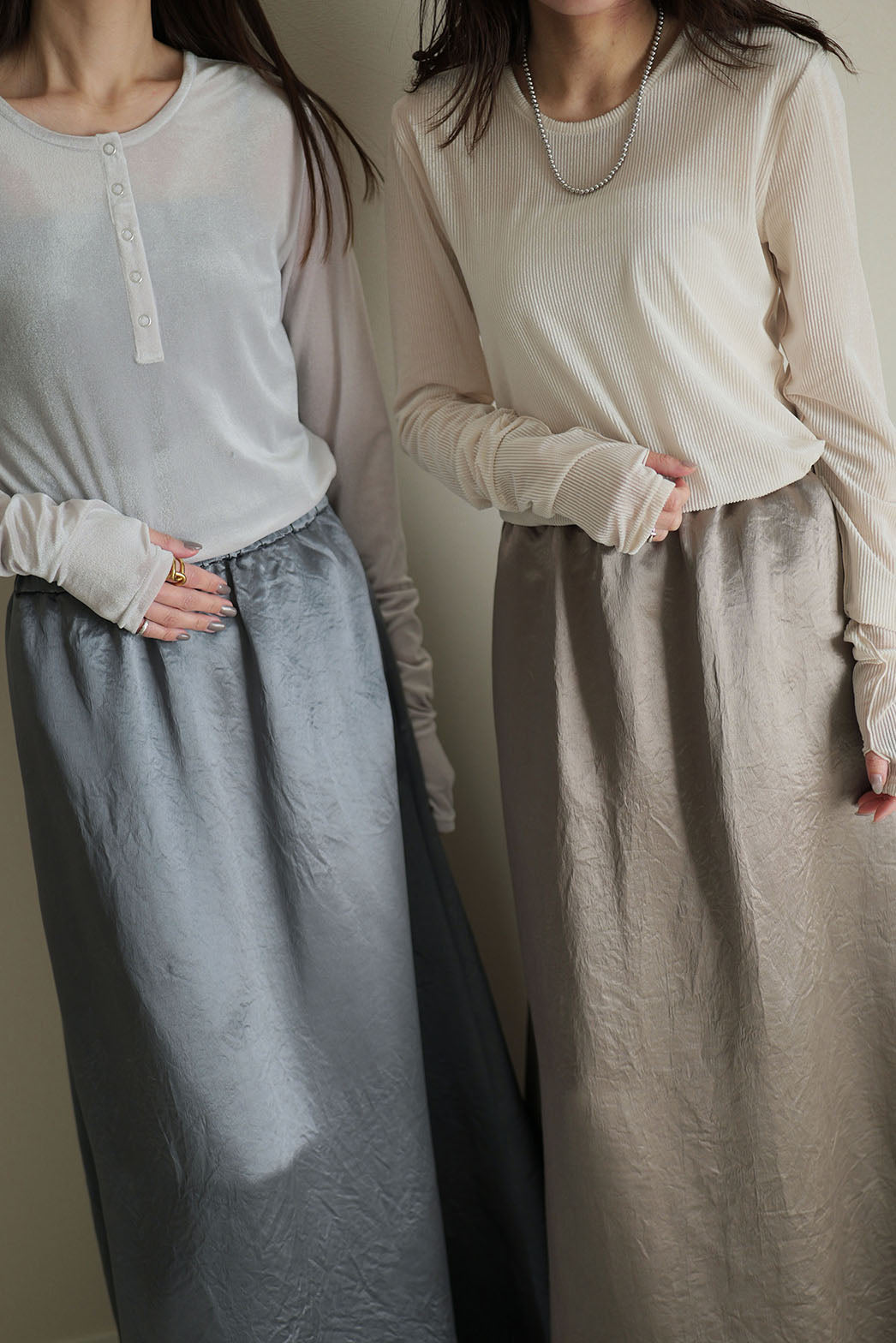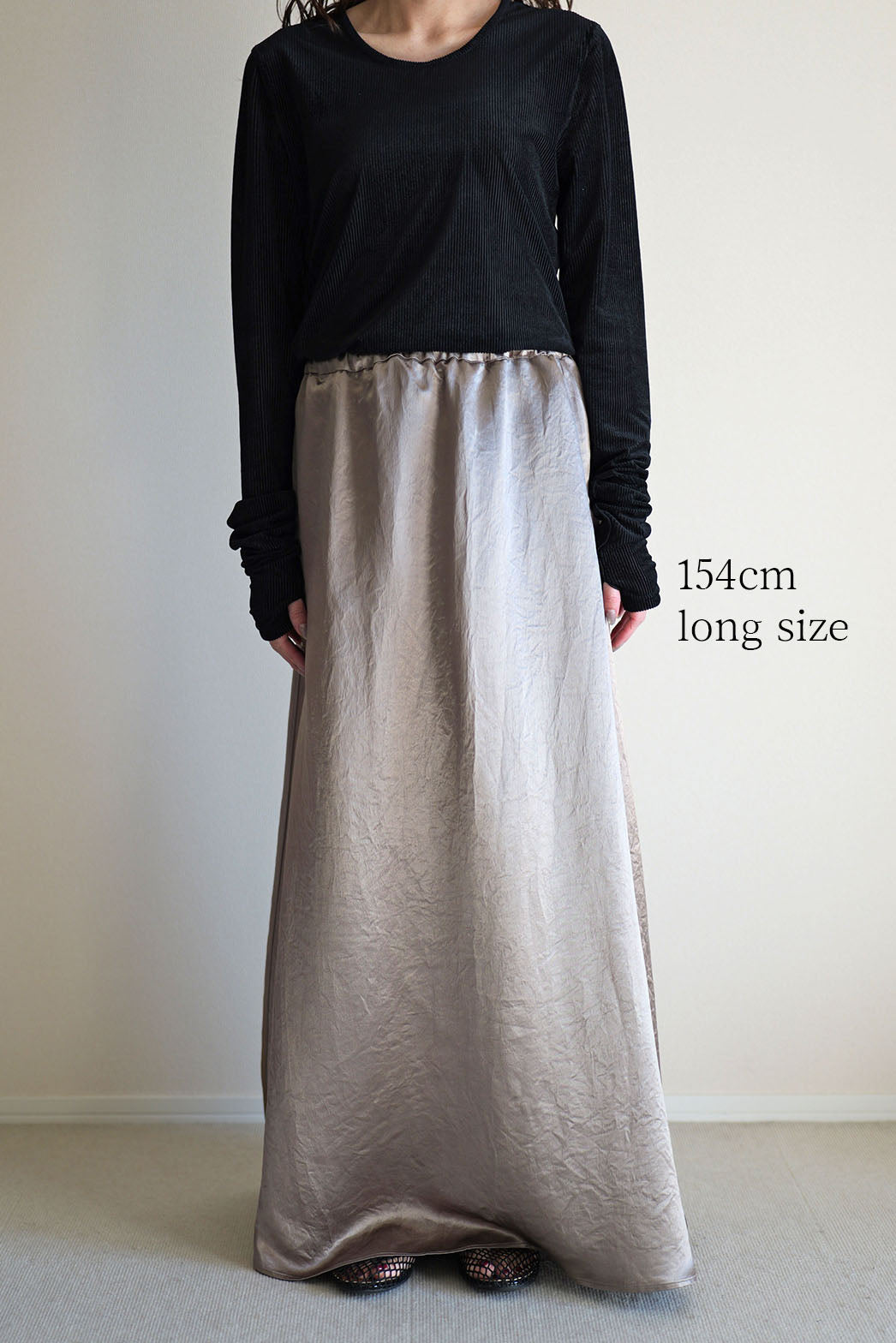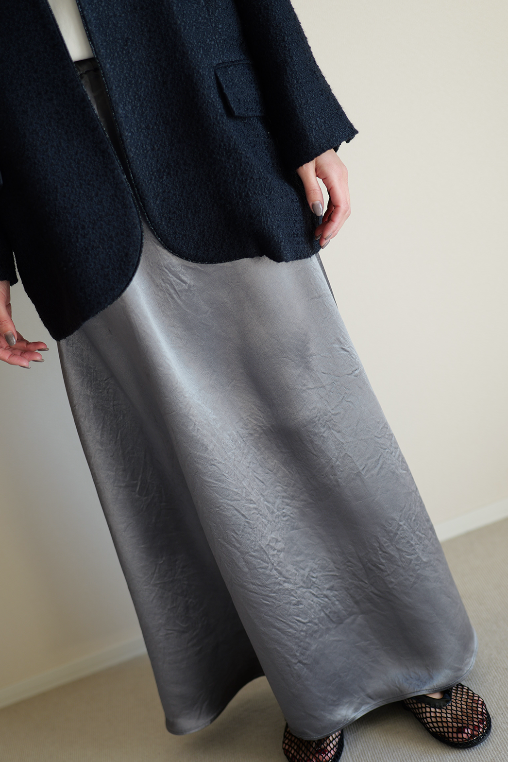 とろみのある肉厚なサテンは、光をやわらかく乱反射し、