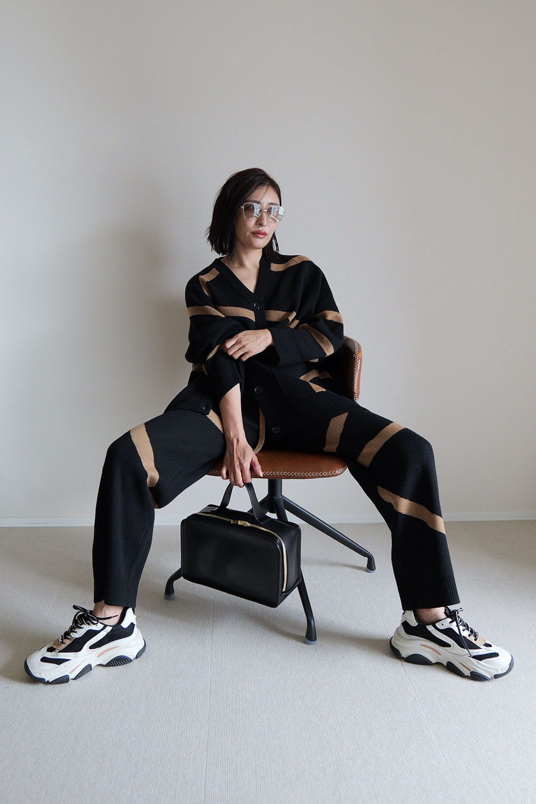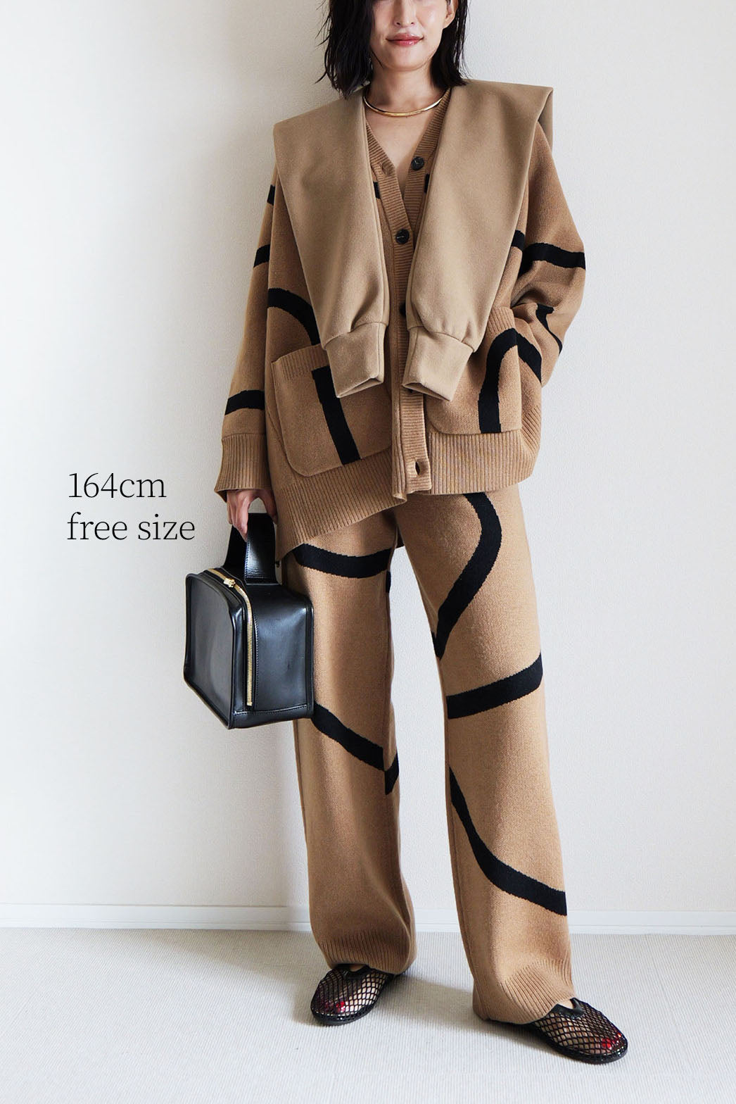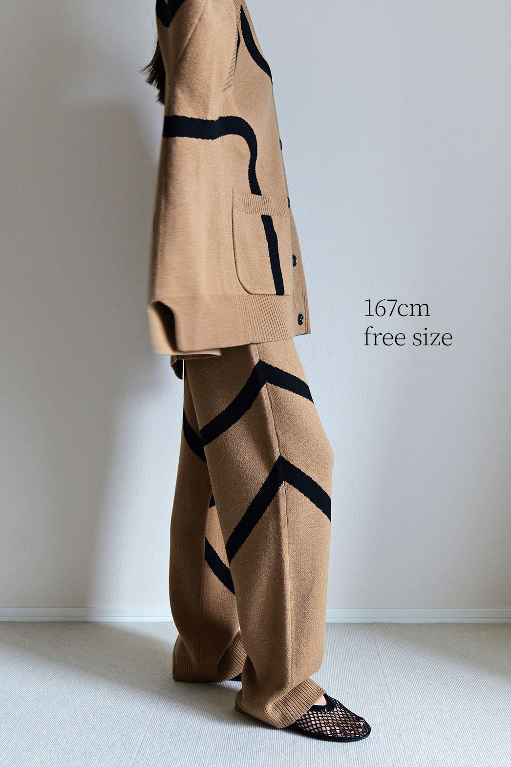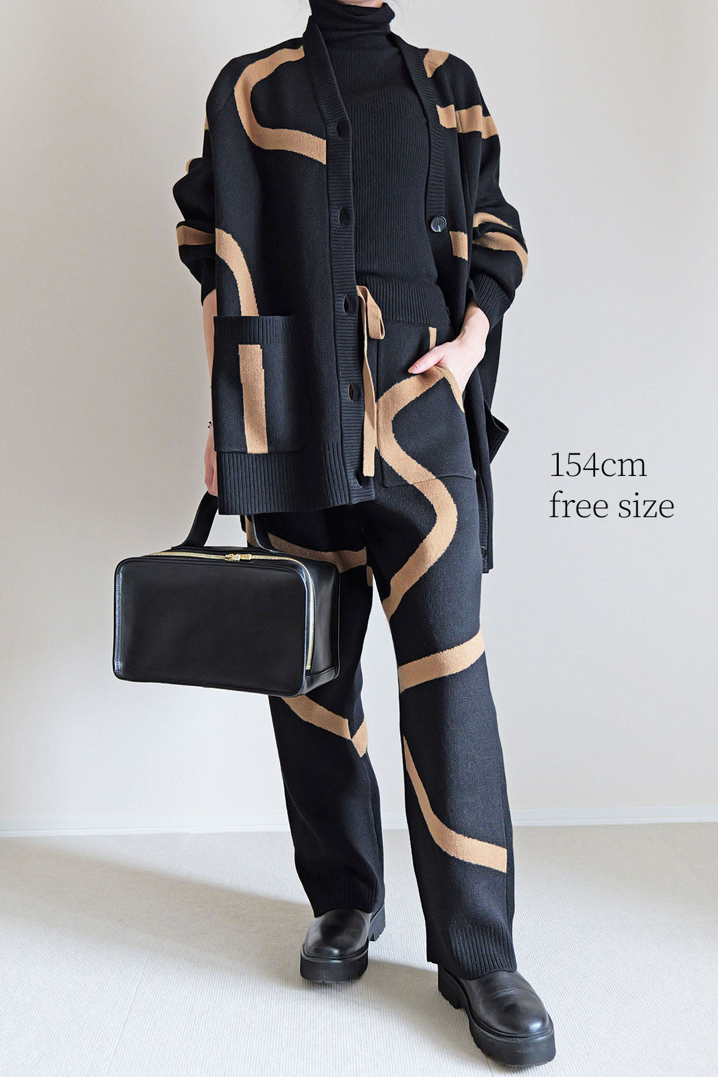 同じ柄のパンツを一緒に着ても、計算されたライン配置の為バランスよく