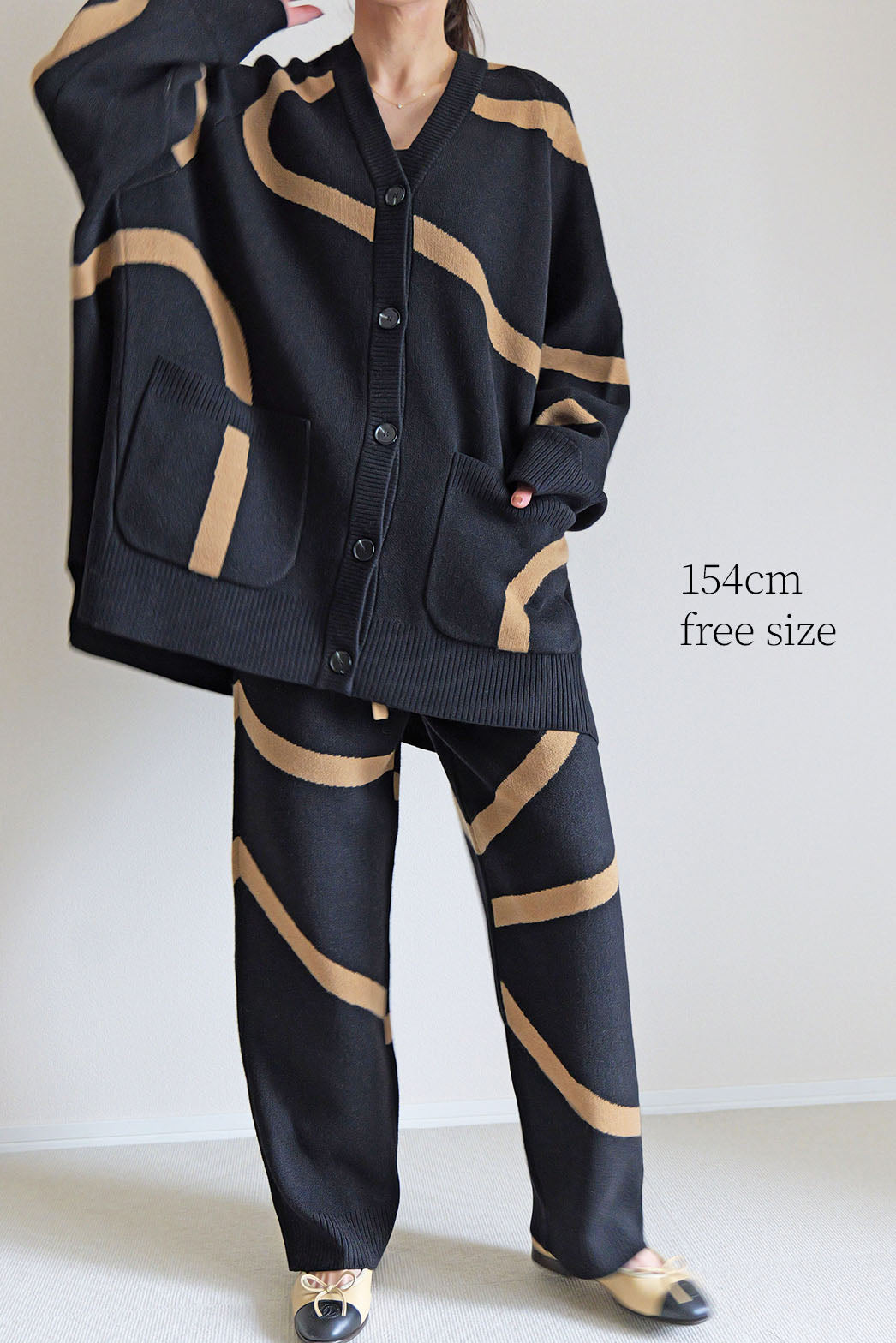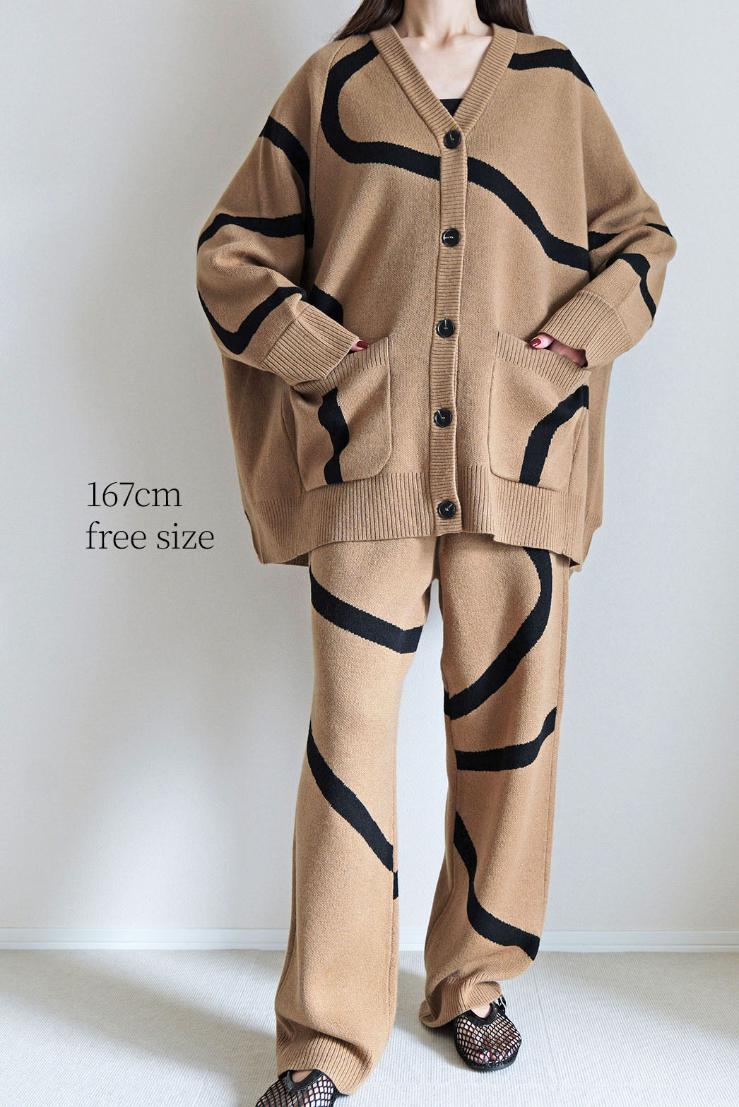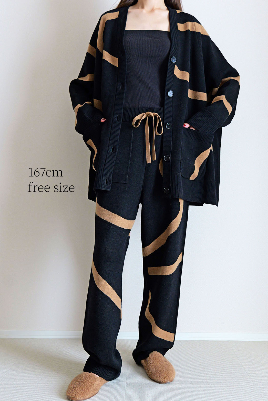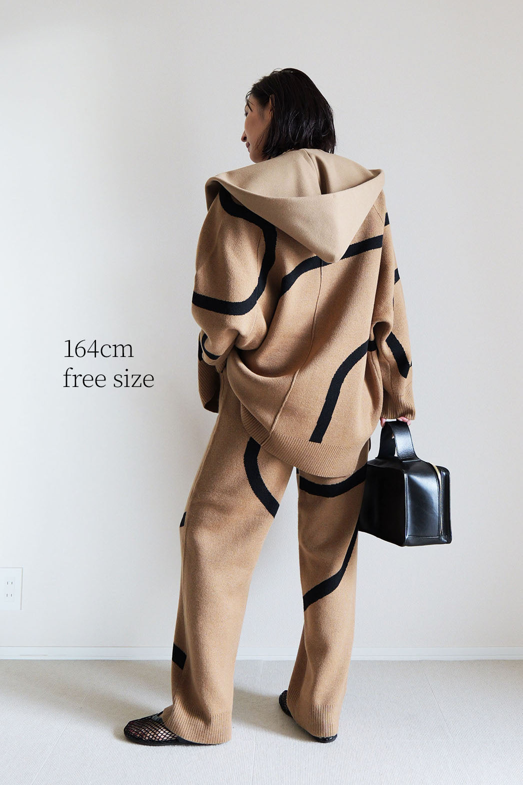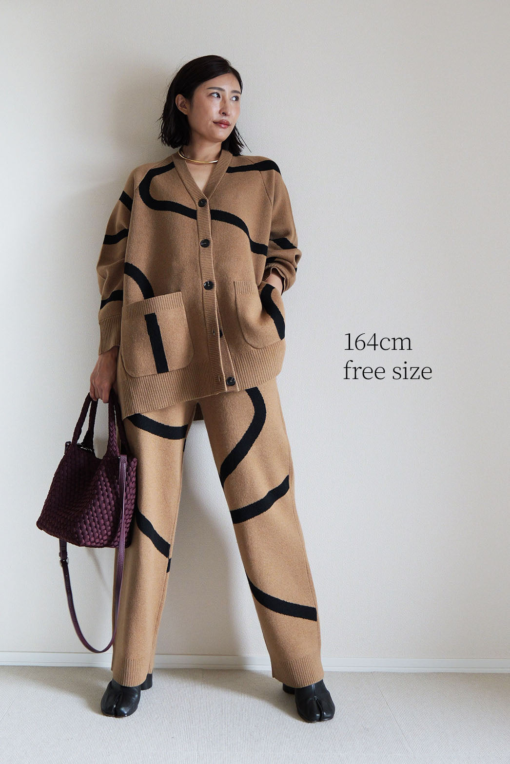 同じ柄のパンツを一緒に着ても、計算されたライン配置の為バランスよく