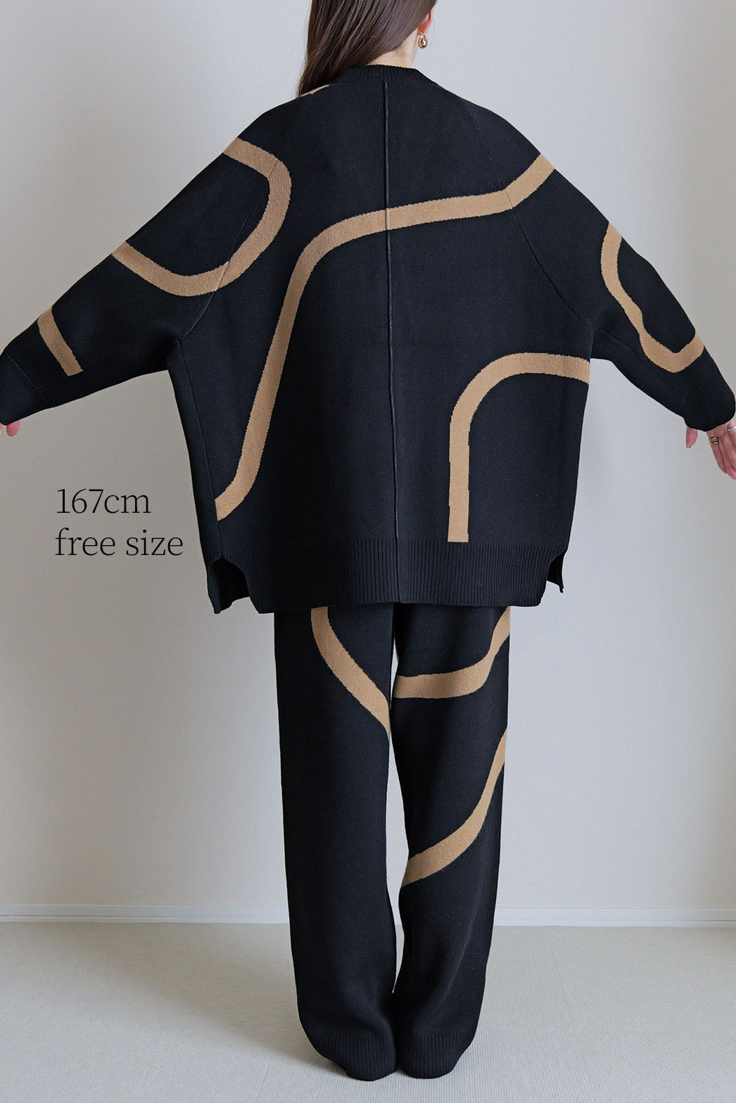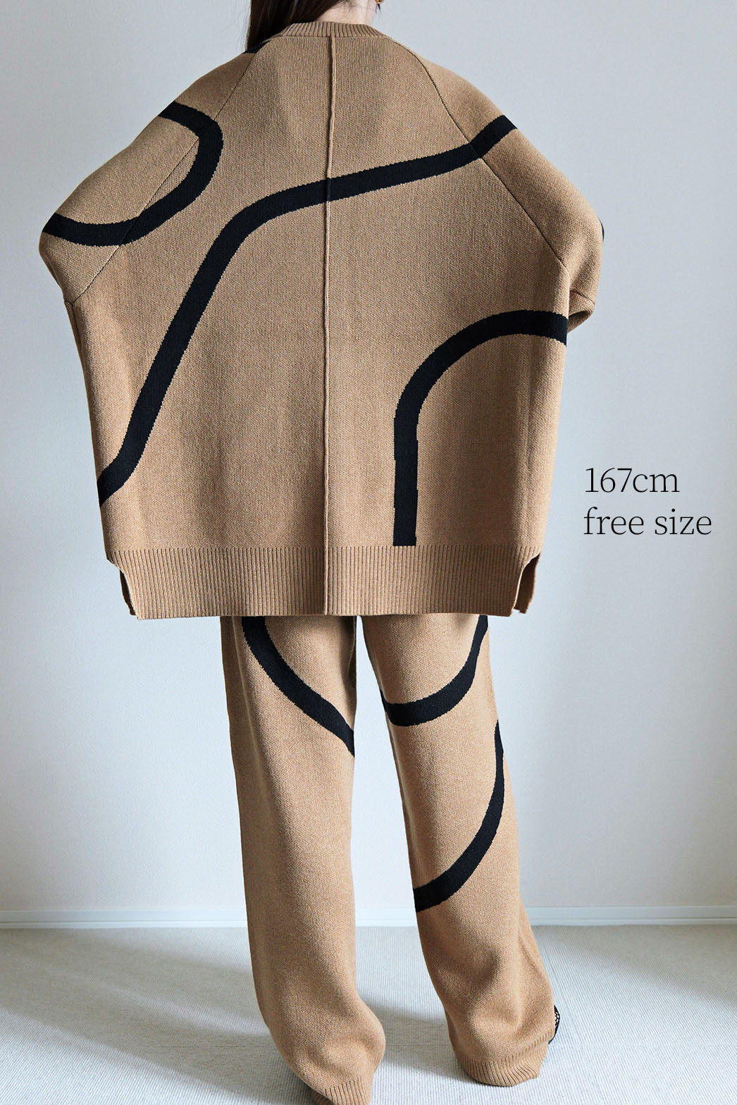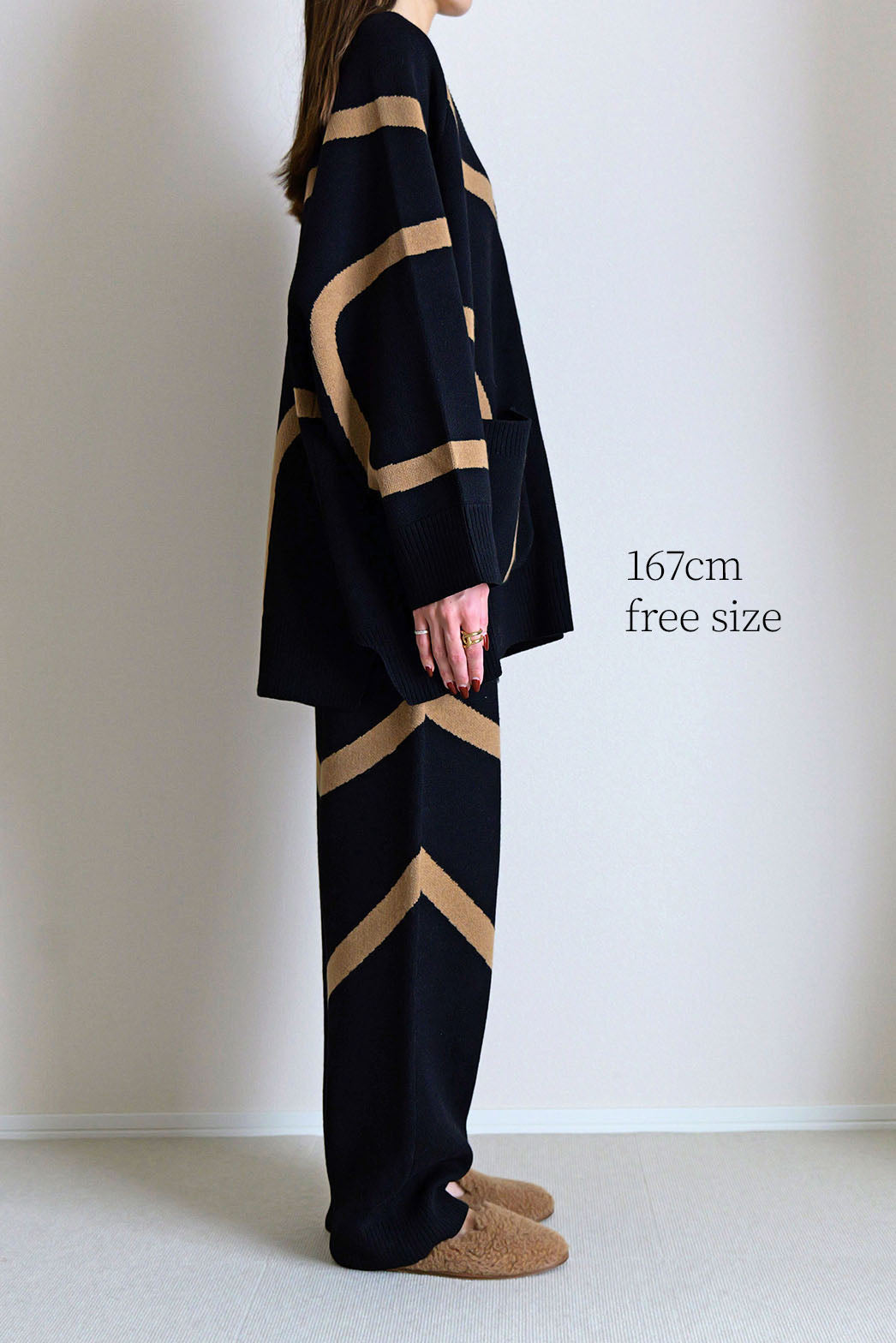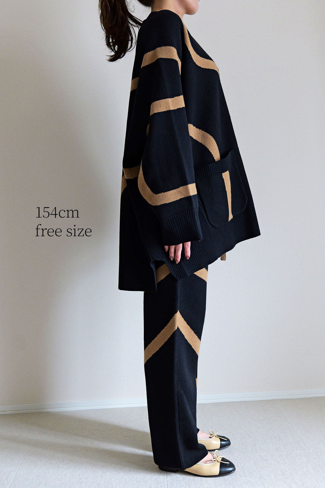 同じ柄のパンツを一緒に着ても、計算されたライン配置の為バランスよく