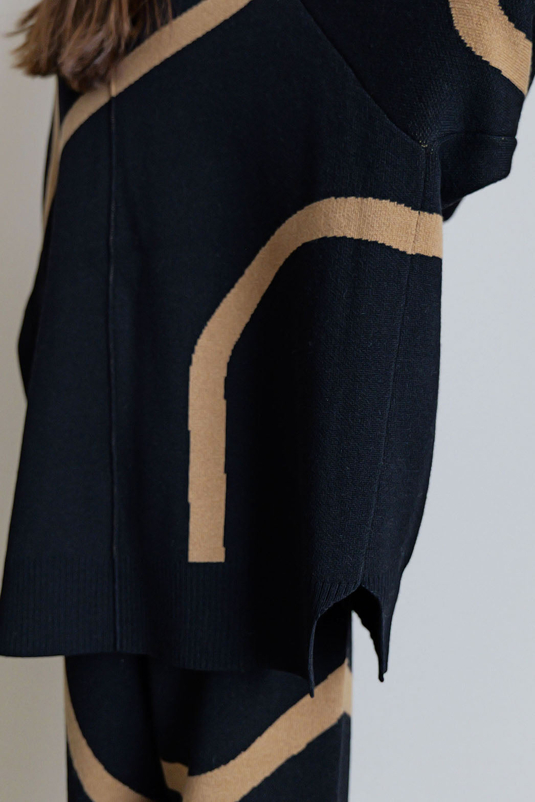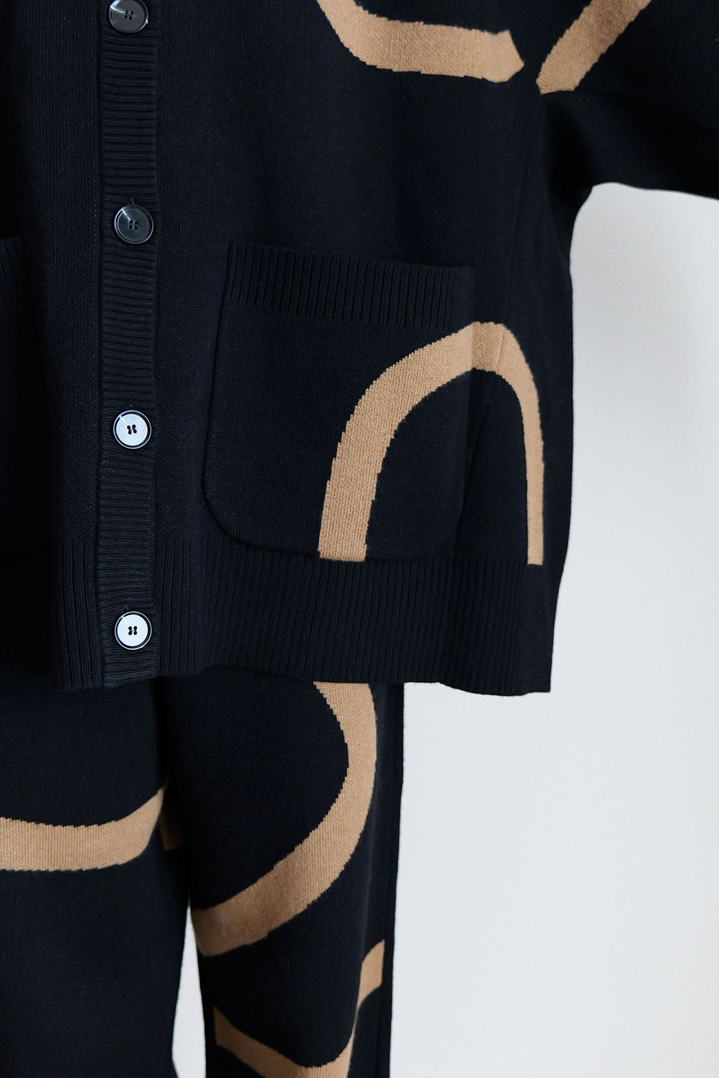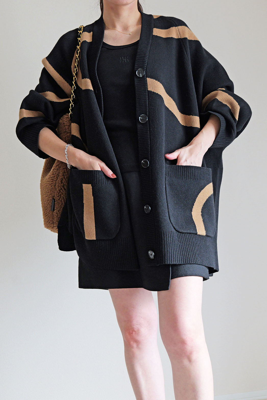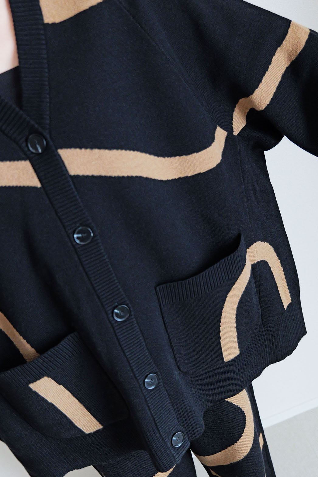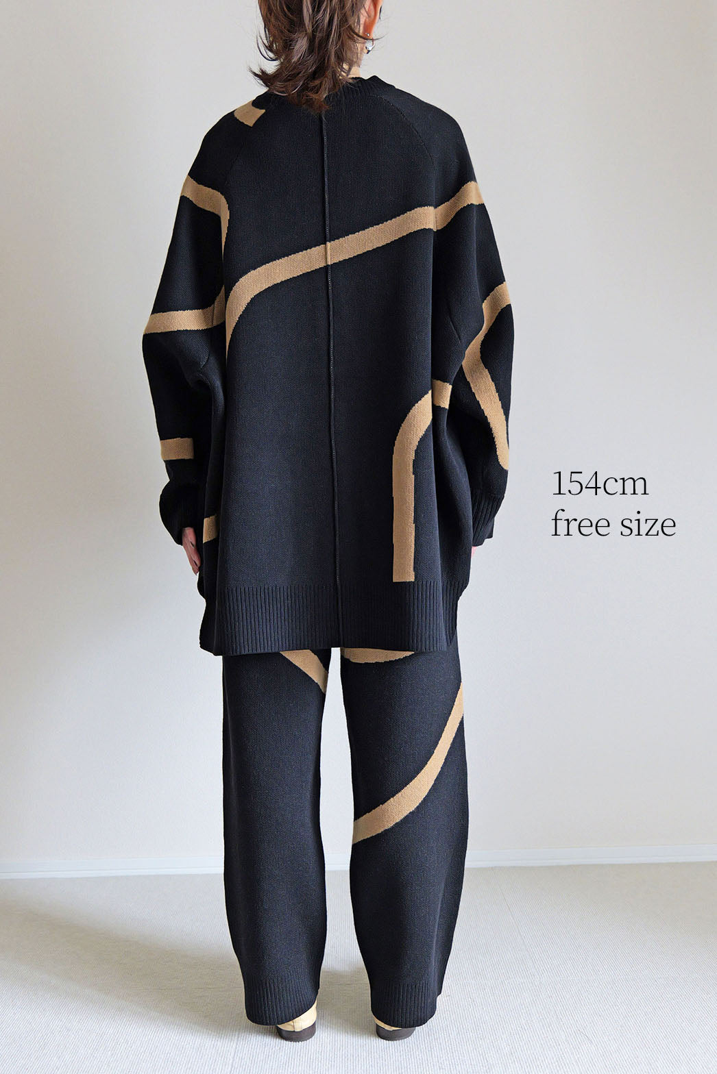同じ柄のパンツを一緒に着ても、計算されたライン配置の為バランスよく