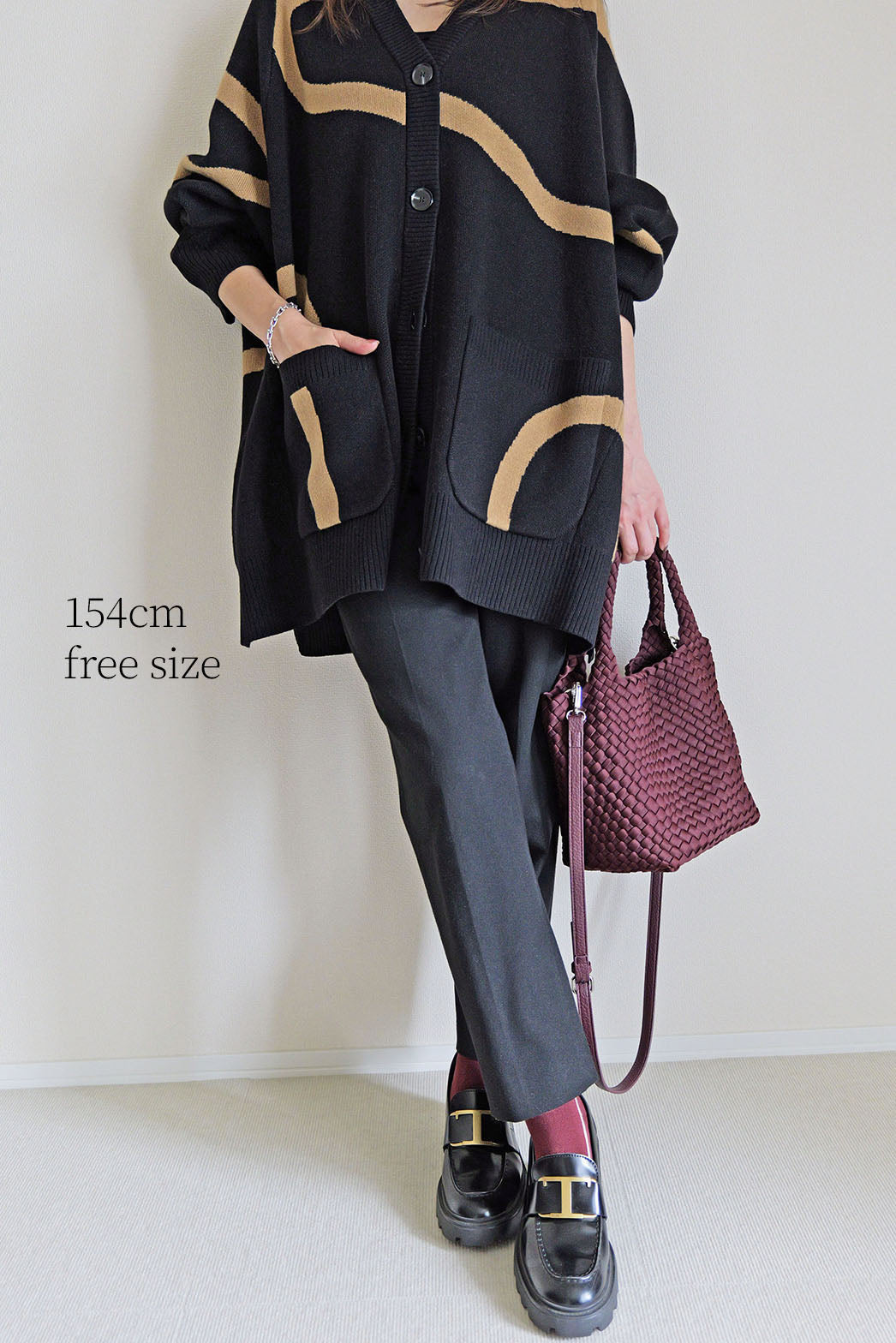 ゆったりしたシルエットが、体のラインをひろわず華奢な印象をあたえ