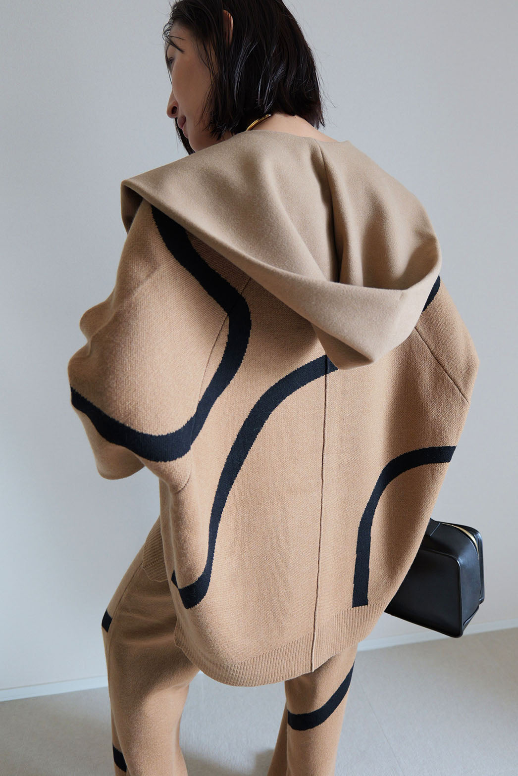 後ろ中心にニット縫製をいれることで、きちんと感を出しつつも