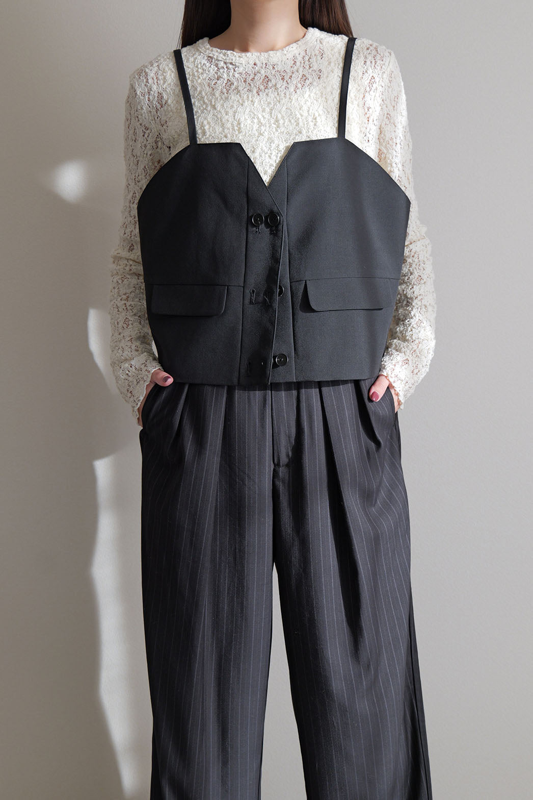 自分にしか見えない部分ですが、マニッシュな装いの中にも女性らしさを感じたい、