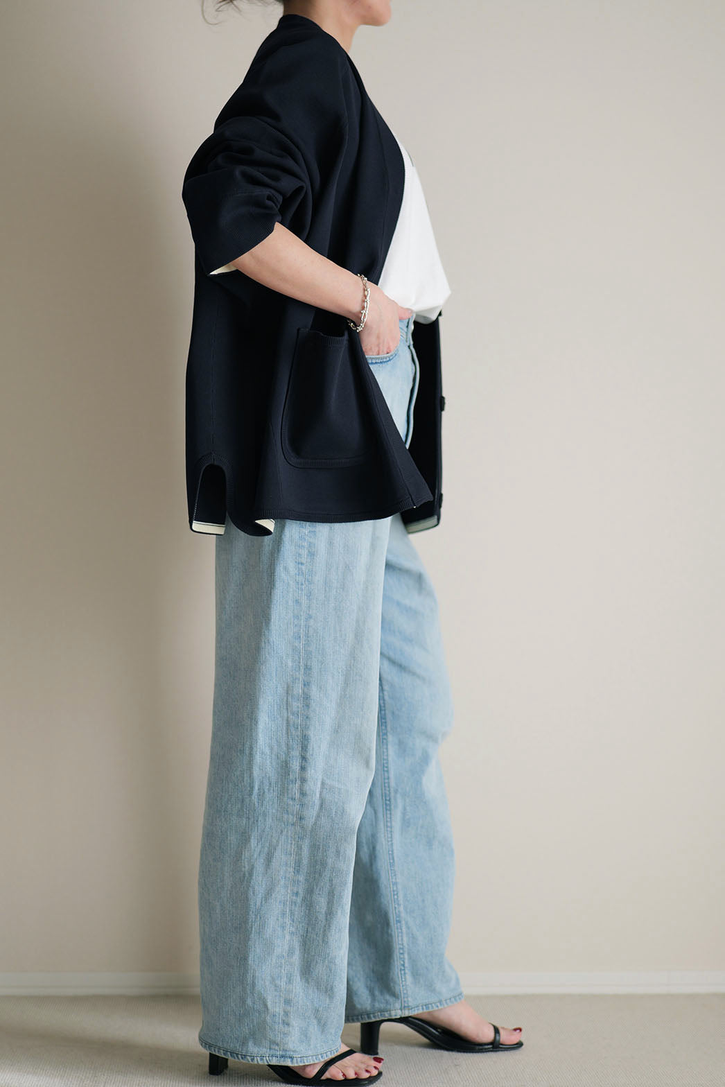 さらに脇スリットを入れることで、軽やかなカーディガンジャケットに仕上げています