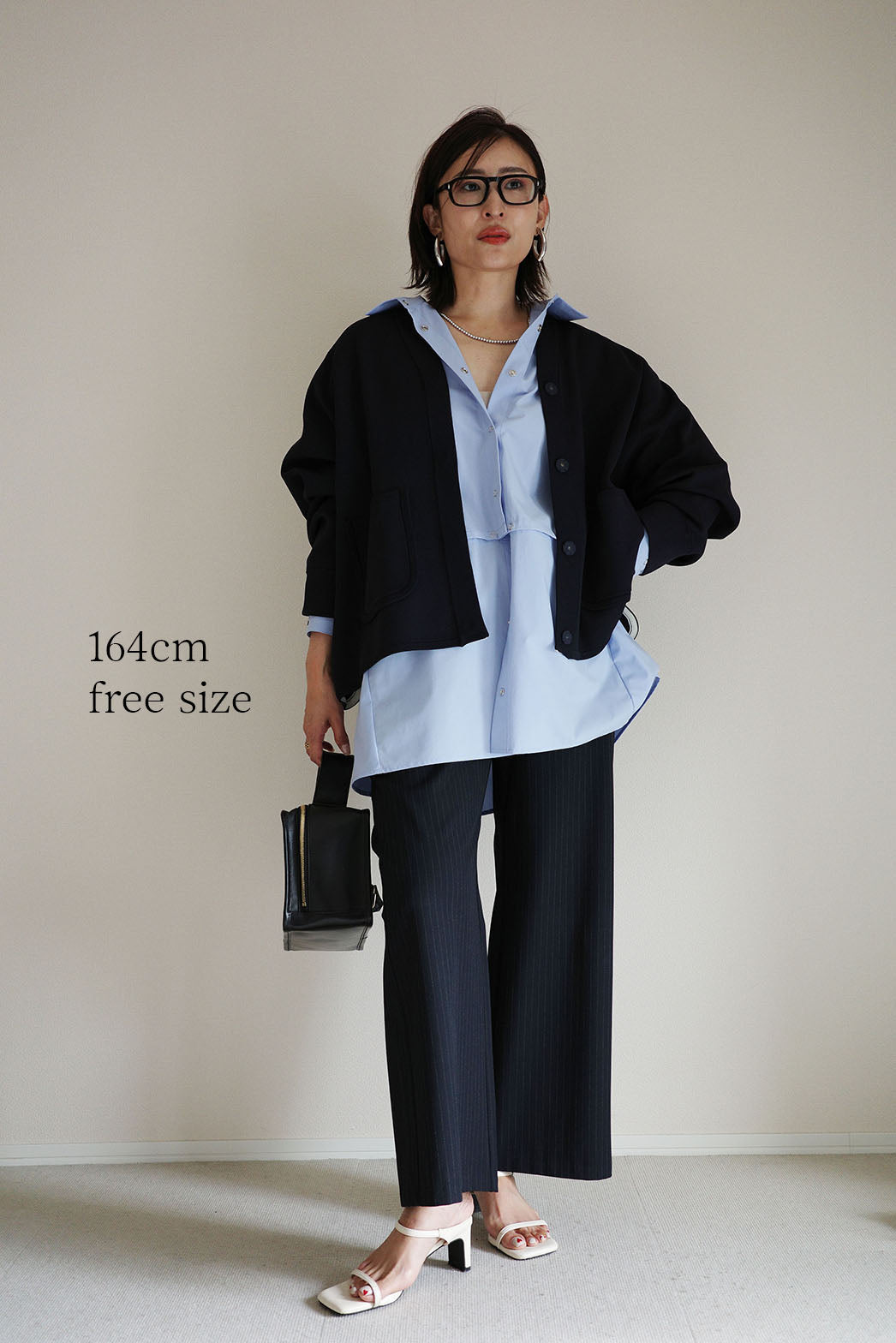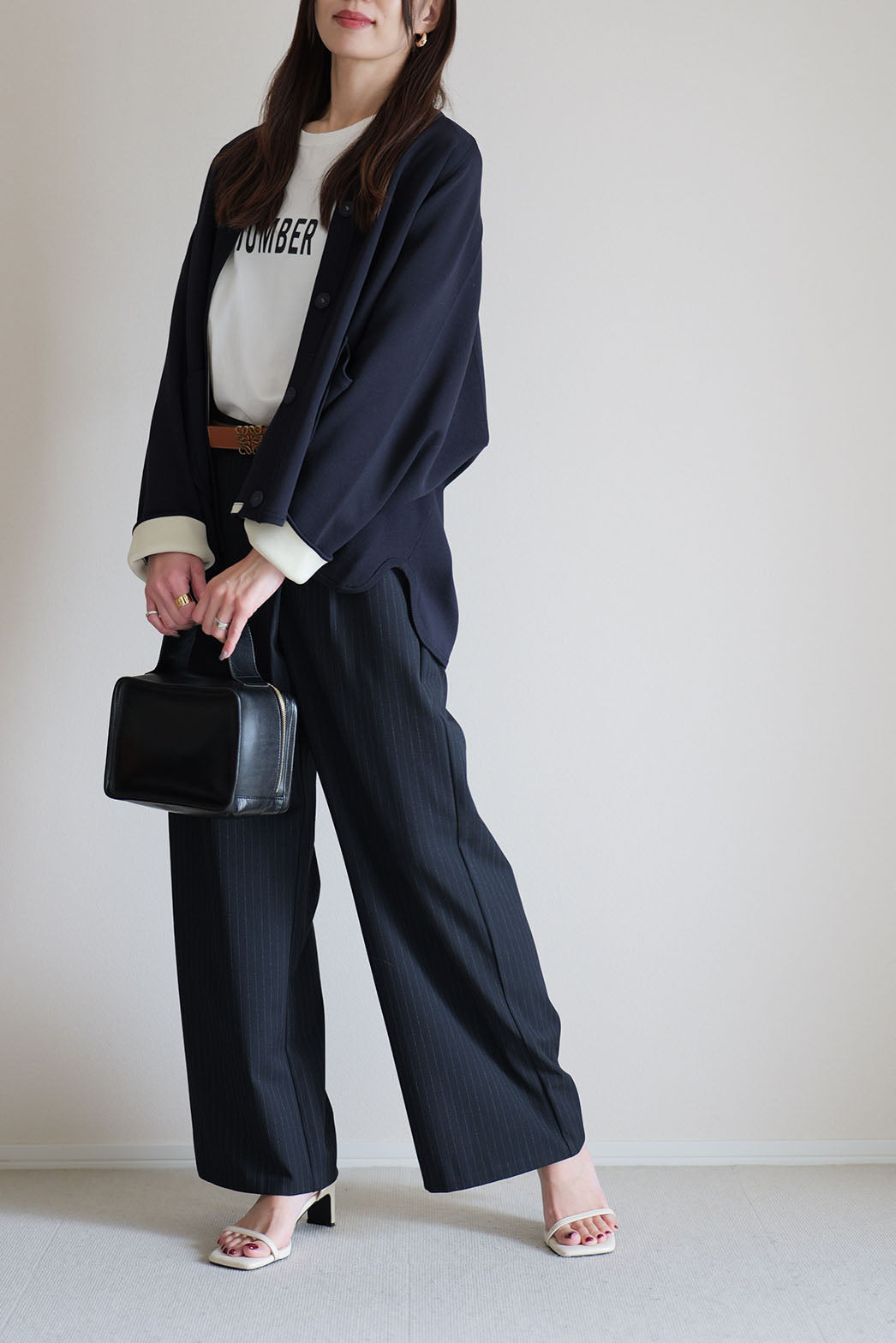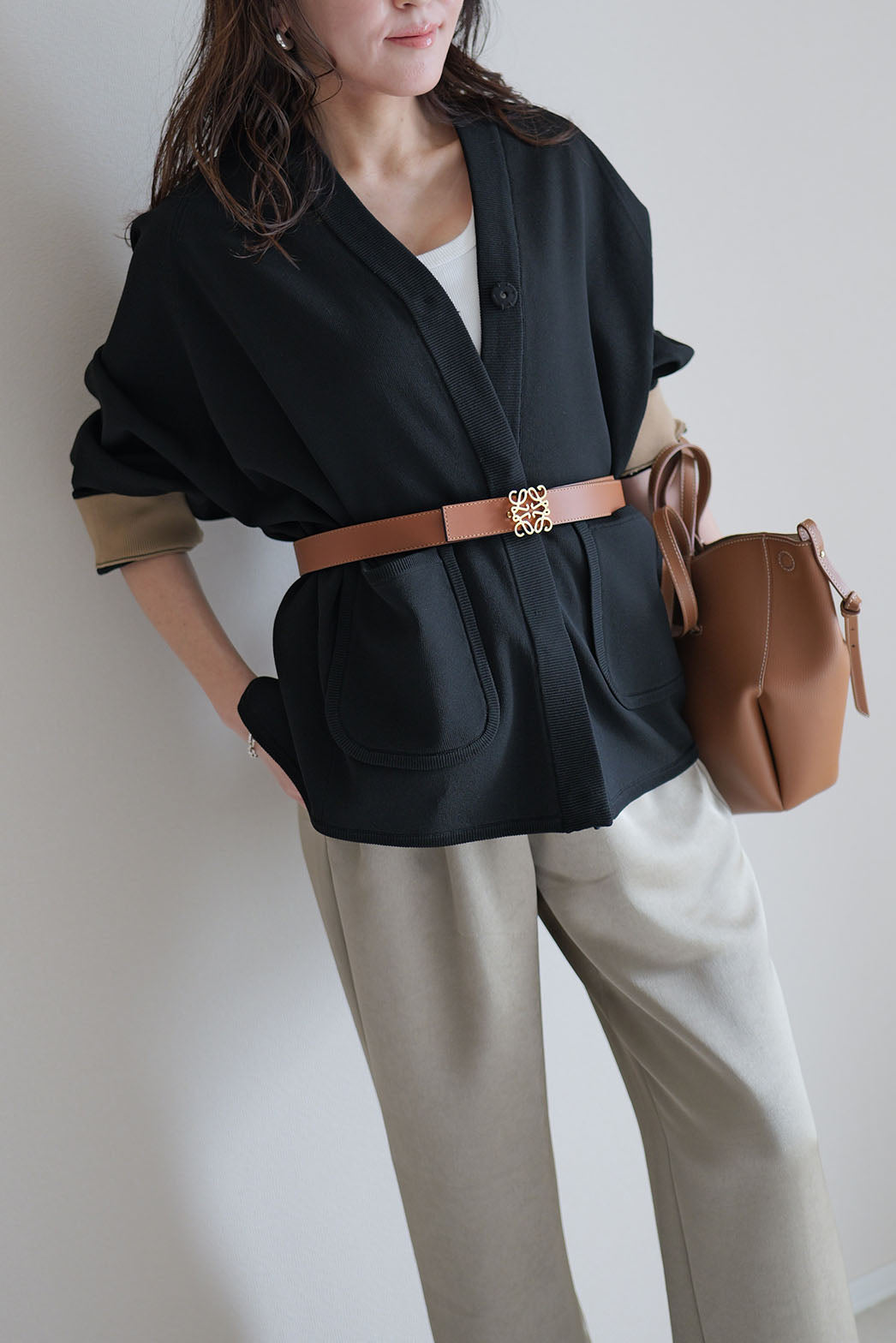 お手持ちのベルトでウエストマークすれば、きちんと感のある着こなしも楽しめます