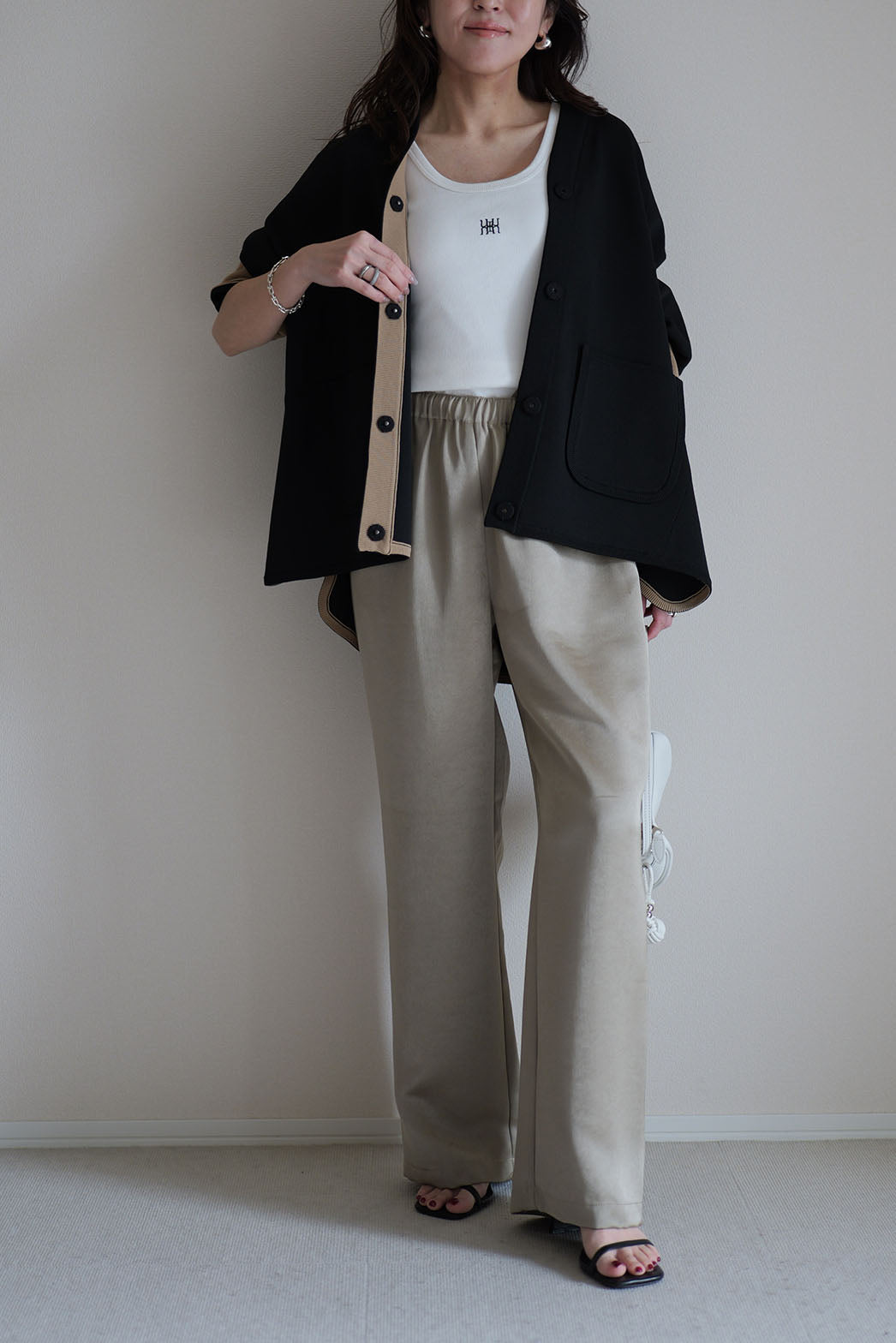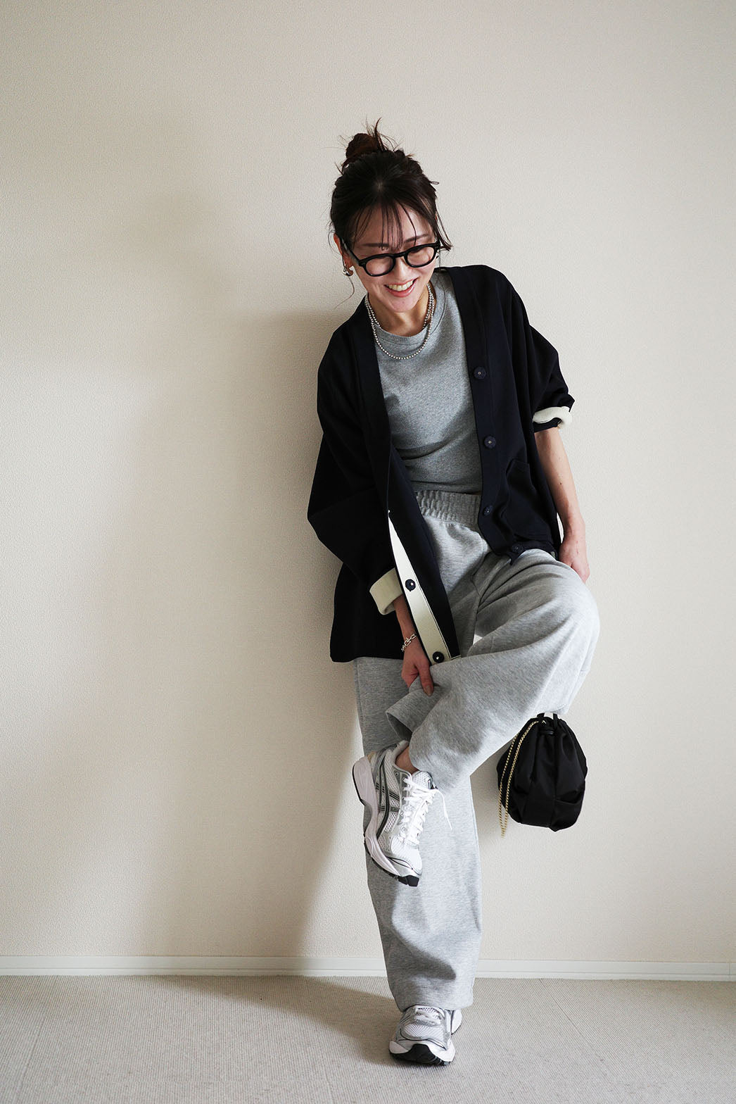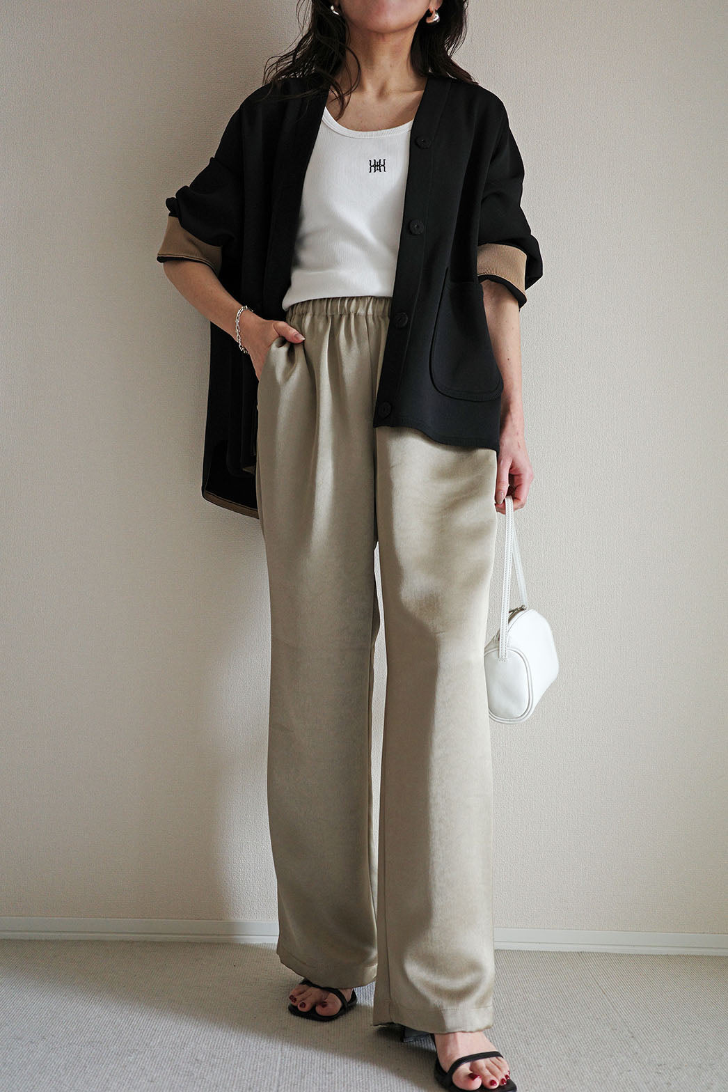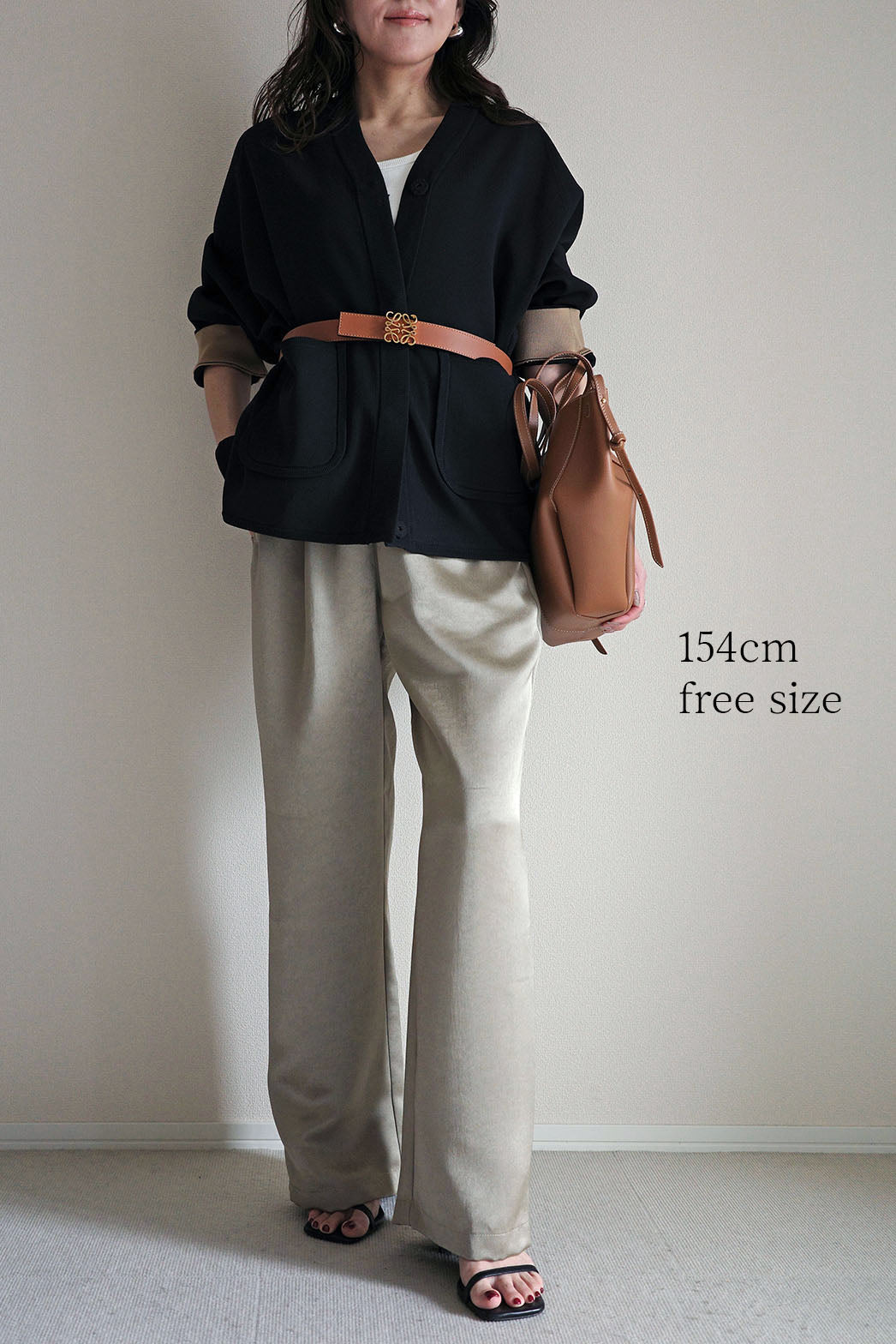 ゆったりとしたシルエットと美しい落ち感が、気負わない上品さを演出