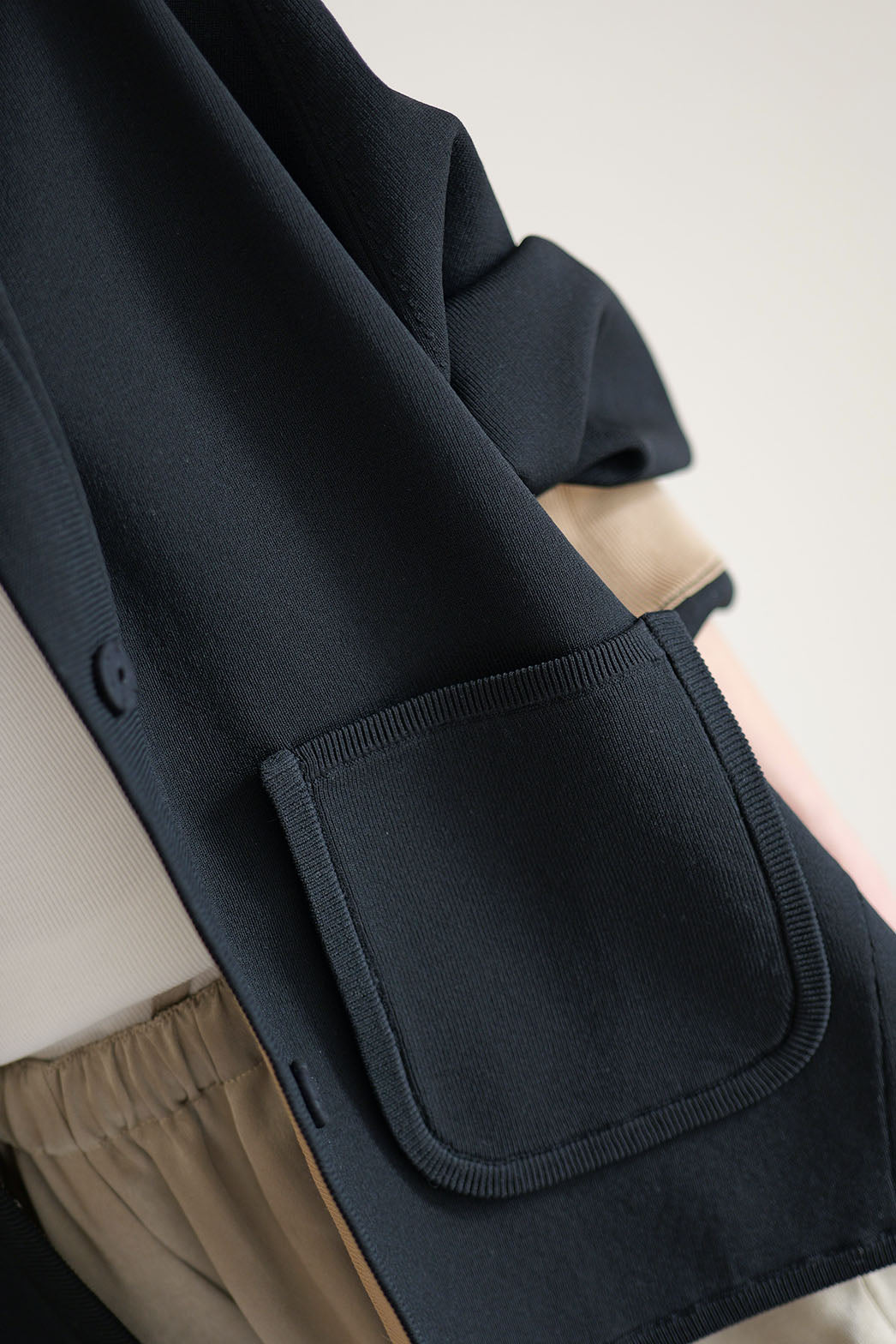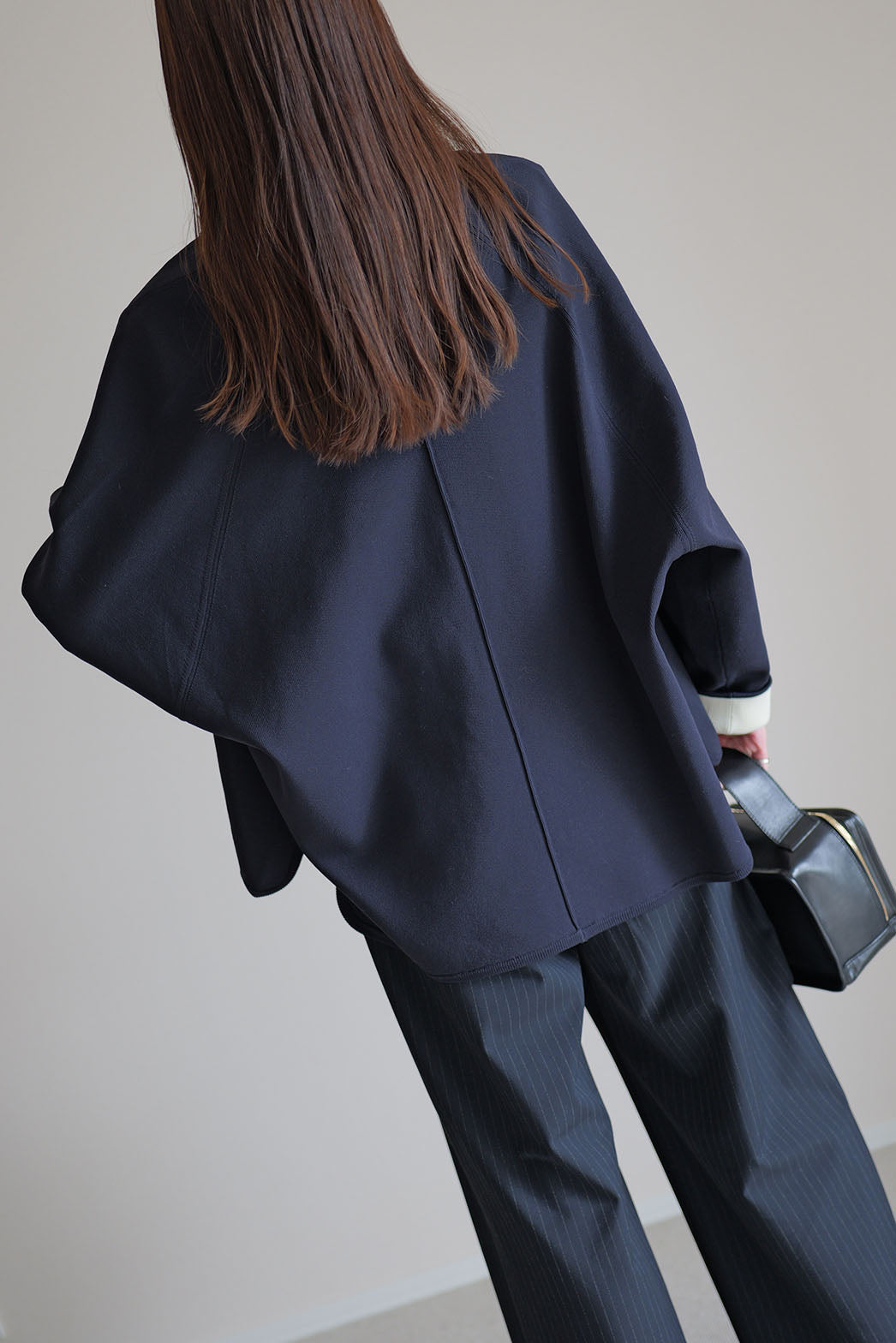 後ろ中心にはニット縫製を施し、ジャケット仕立てに