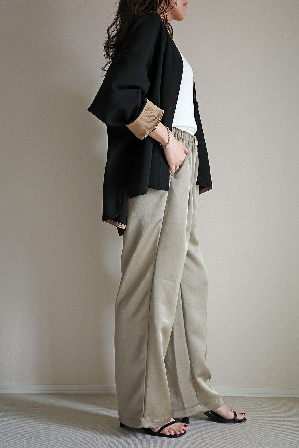 シワになりにくく通年使える素材のため、オフィスカジュアルにもおすすめです