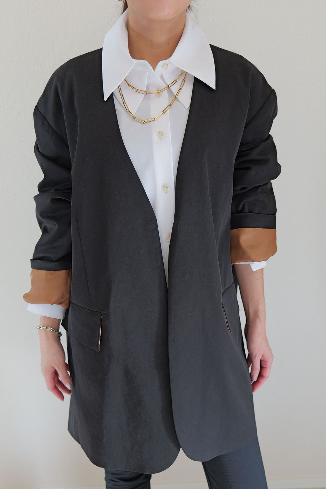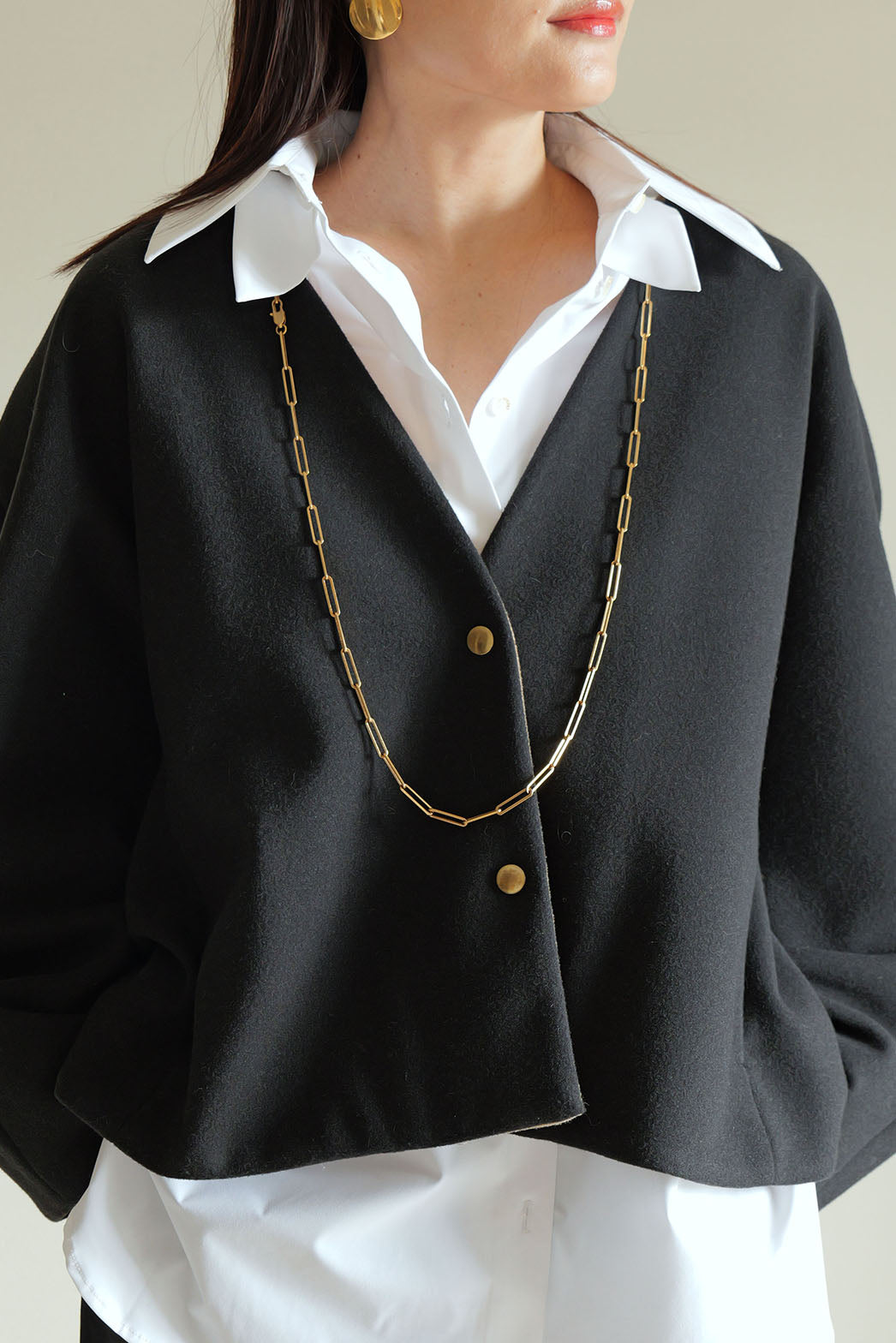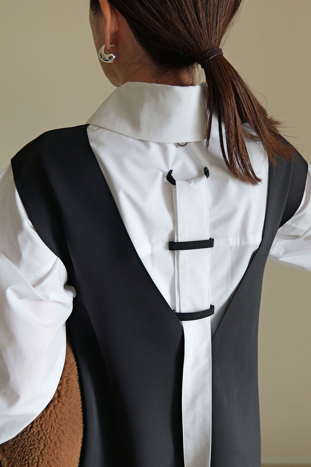 パールの衿、リボンタイ、メタルチョーカーなどと合わせると襟が引き立ちます