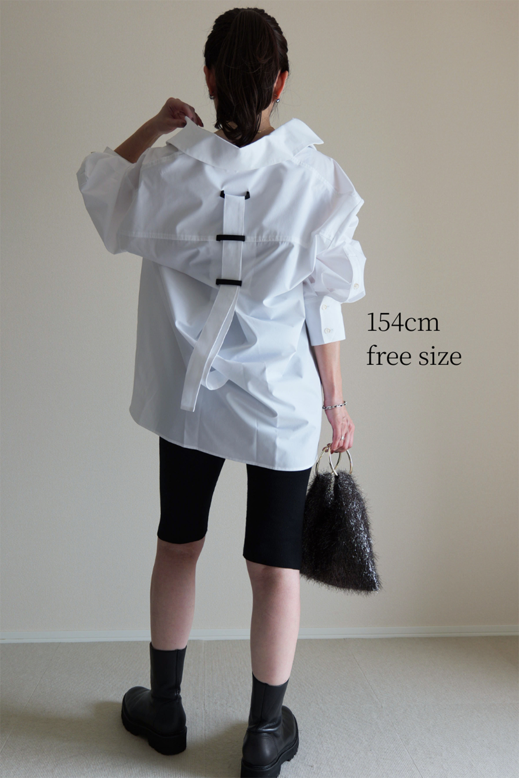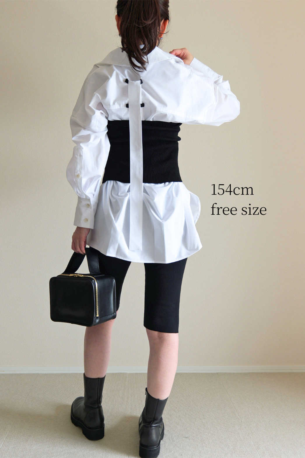 3つのループに通されたベルトを絞ることにより裾が引き上げられ、