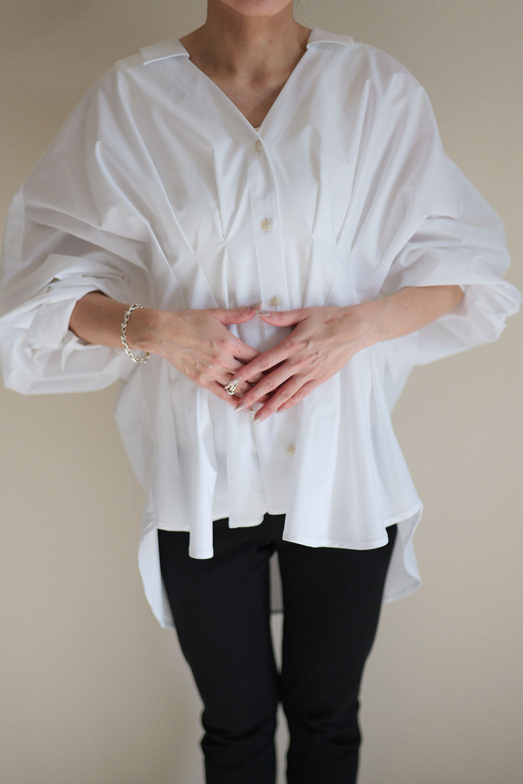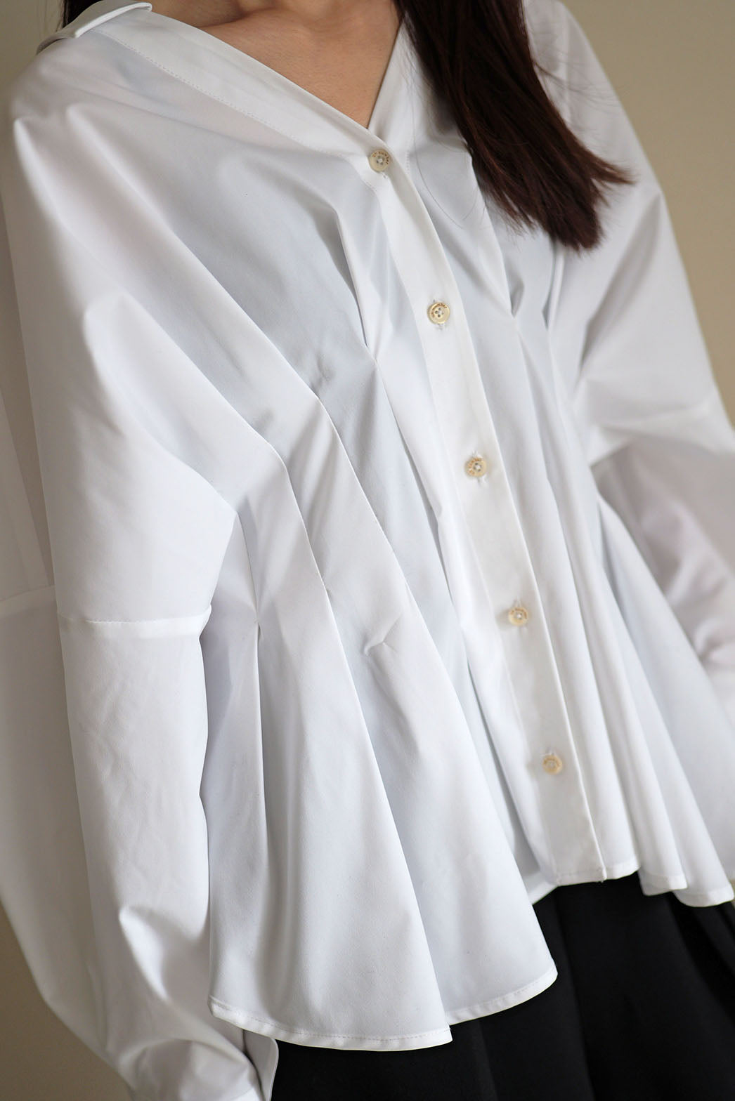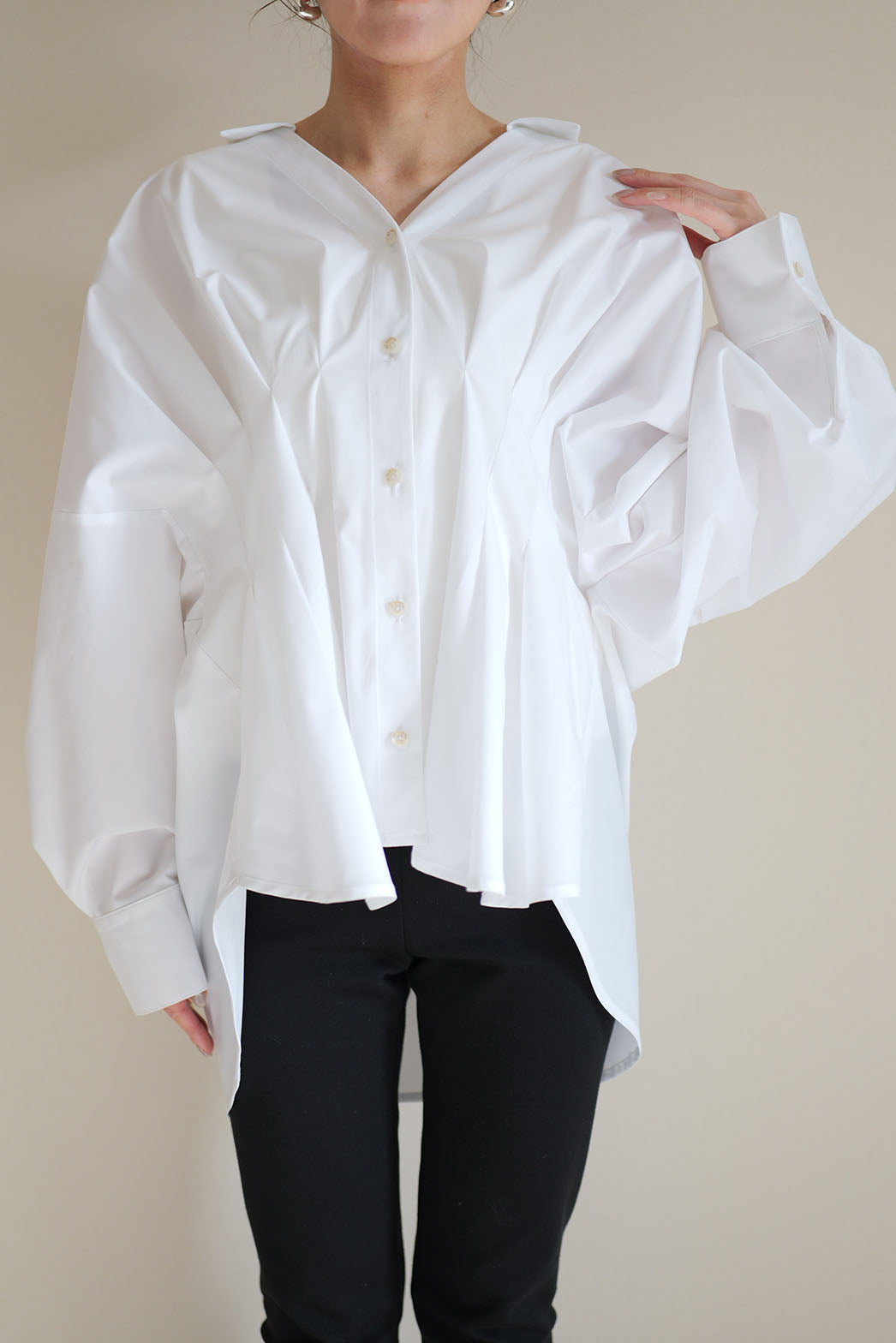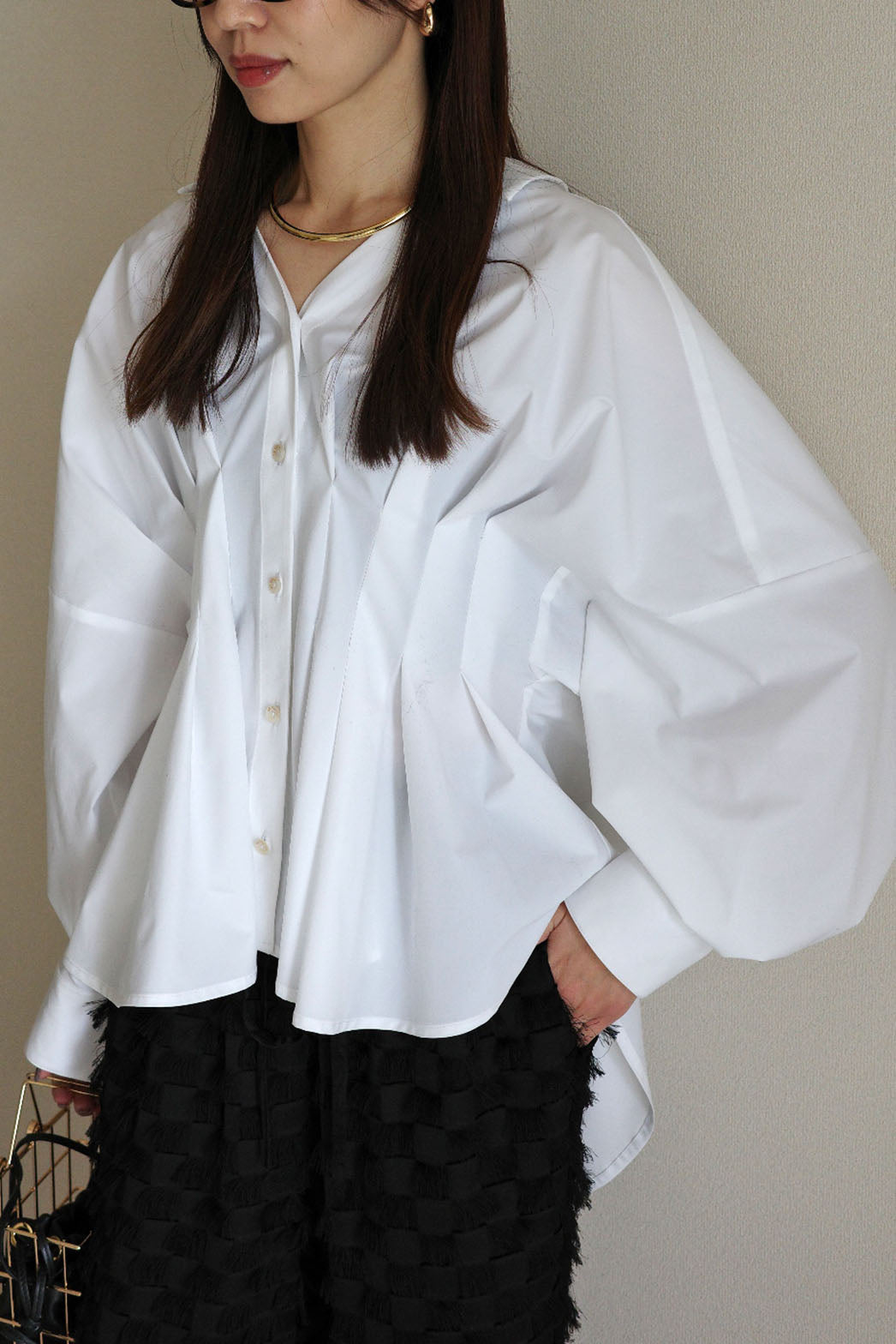 袖を肘まで上げた時のパフ感が魅力的で、扇をひろげたようなあでやかな印象