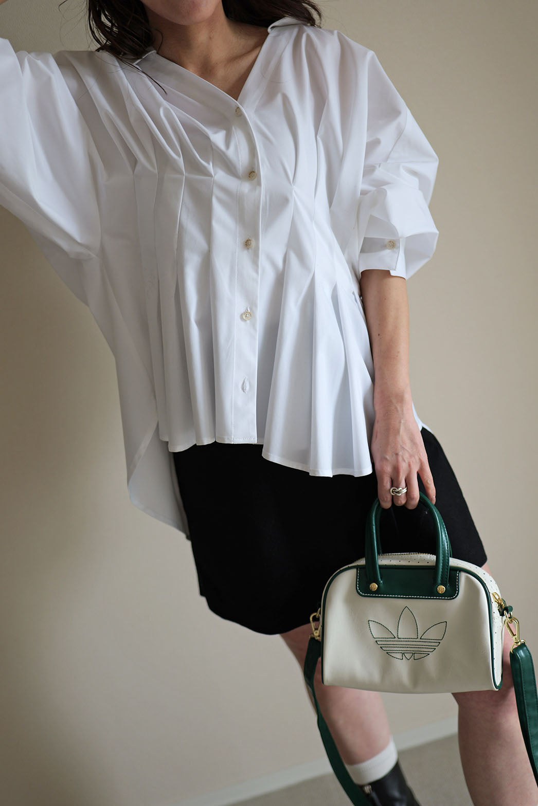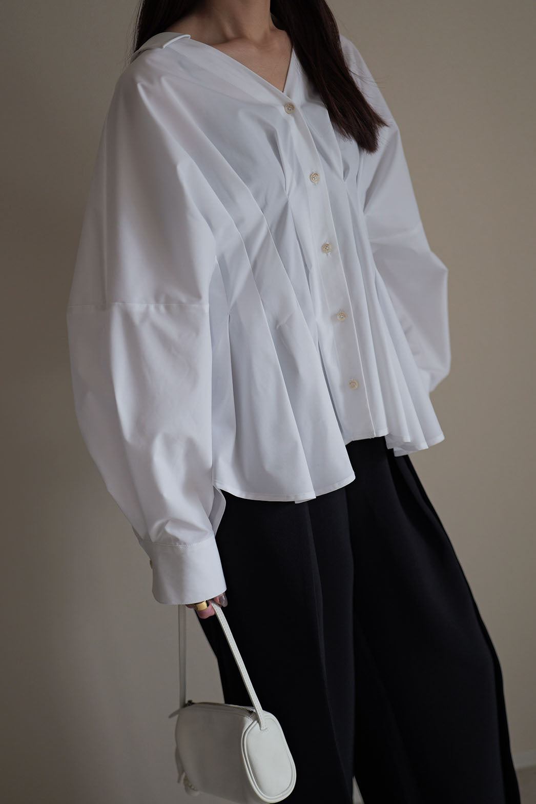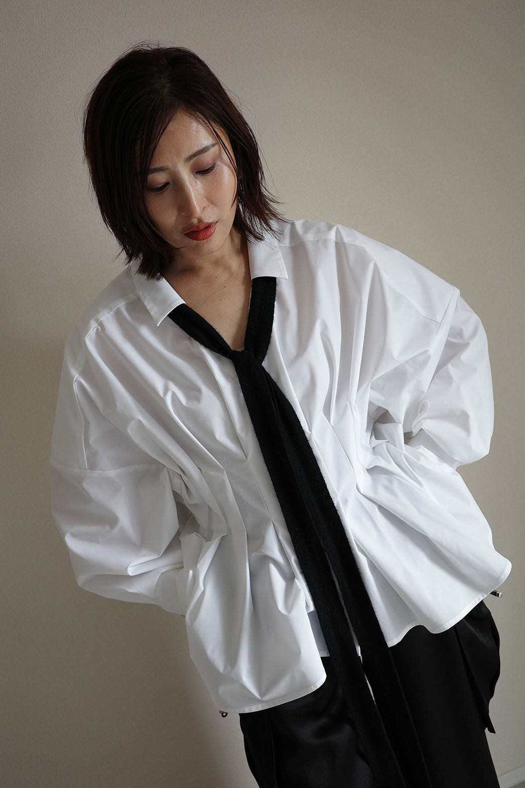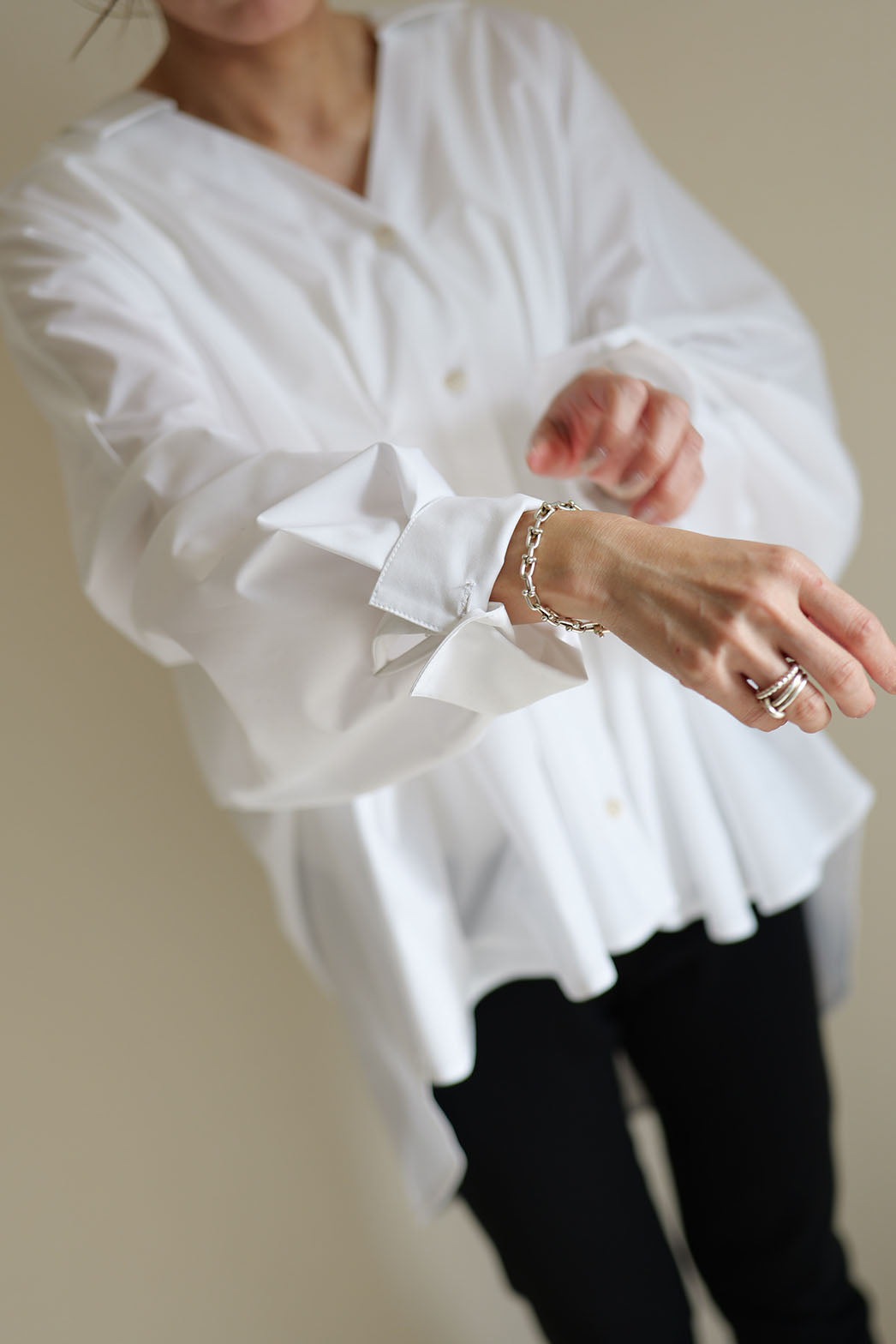 袖を肘まで上げた時のパフ感が魅力的で、扇をひろげたようなあでやかな印象