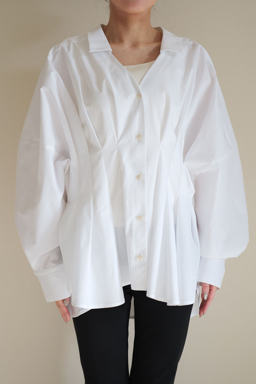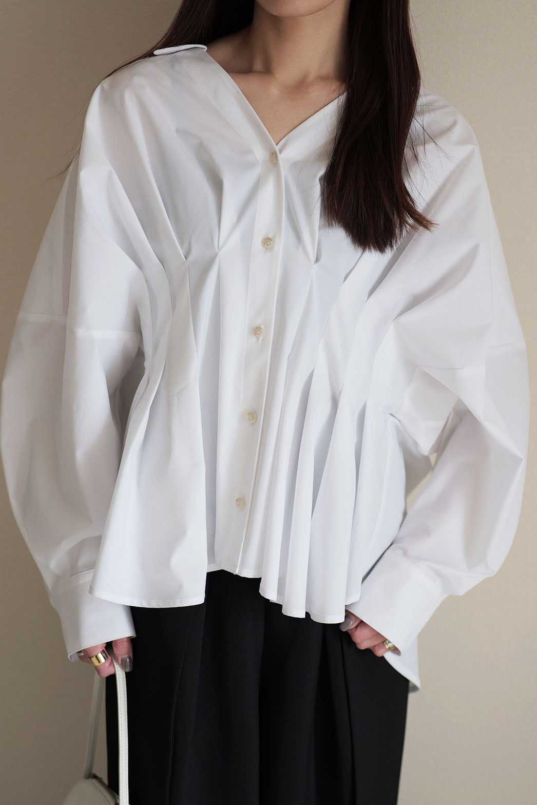 【SEN】撥水タックブラウス|立体タックが映える艶ブラウス – un number